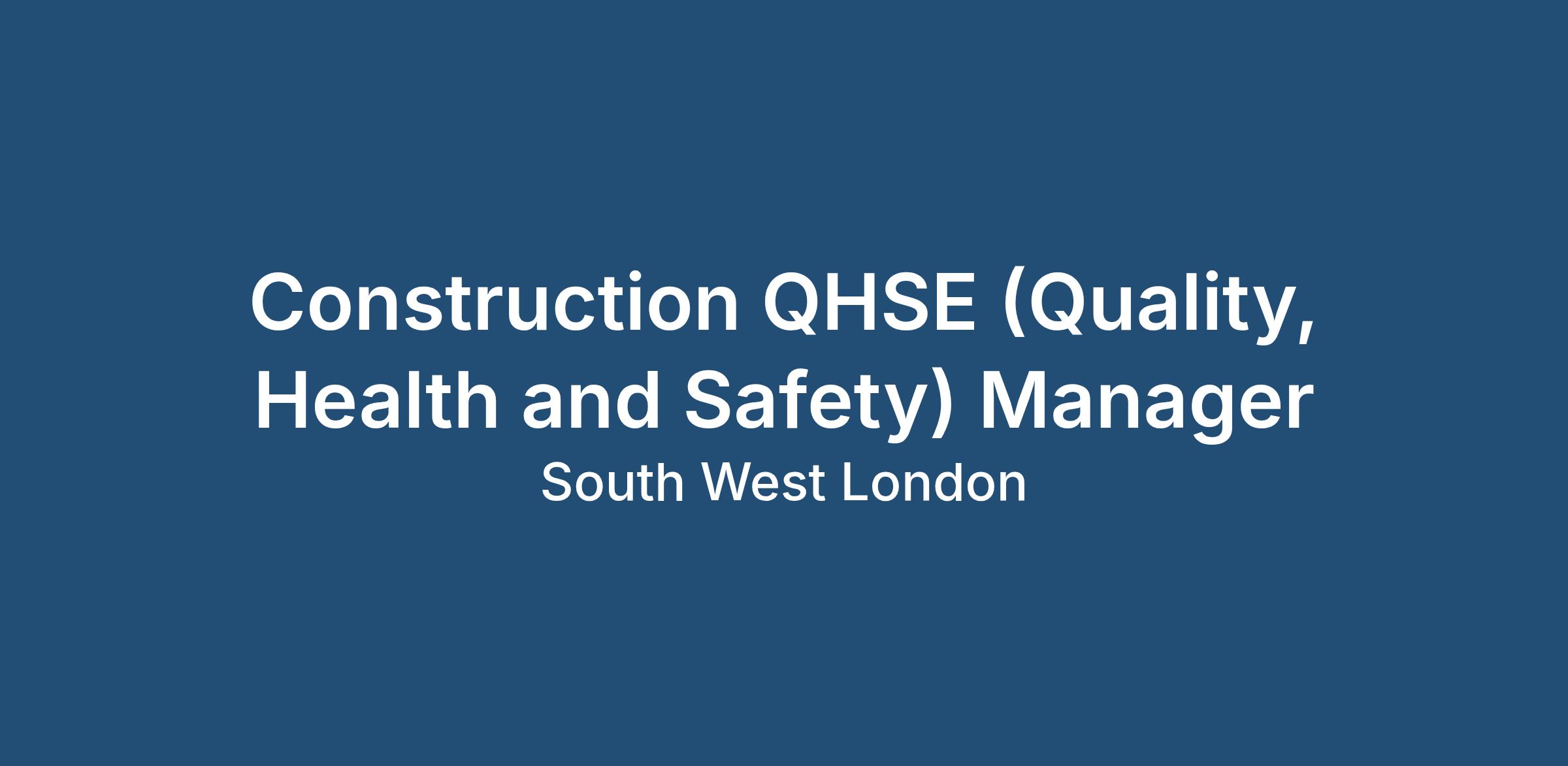 Construction QHSE (Quality, Health and Safety) Manager