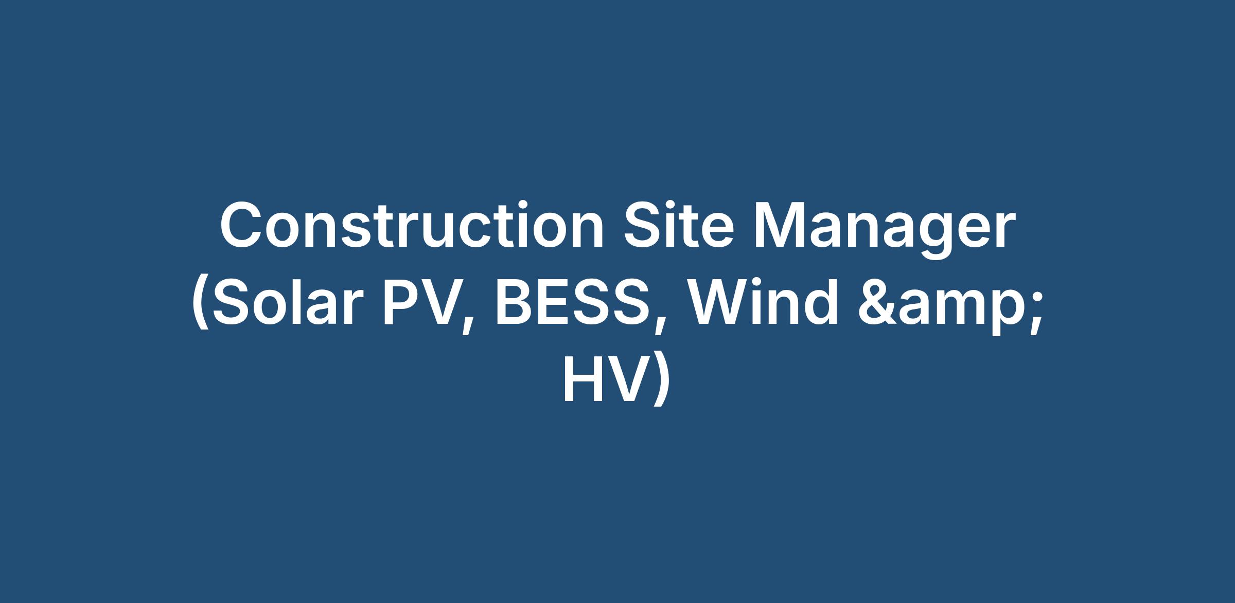 Construction Site Manager (Solar PV, BESS, Wind & HV)