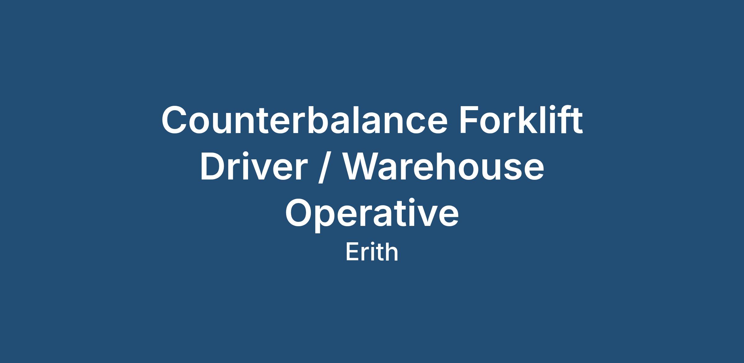Counterbalance Forklift Driver / Warehouse Operative
