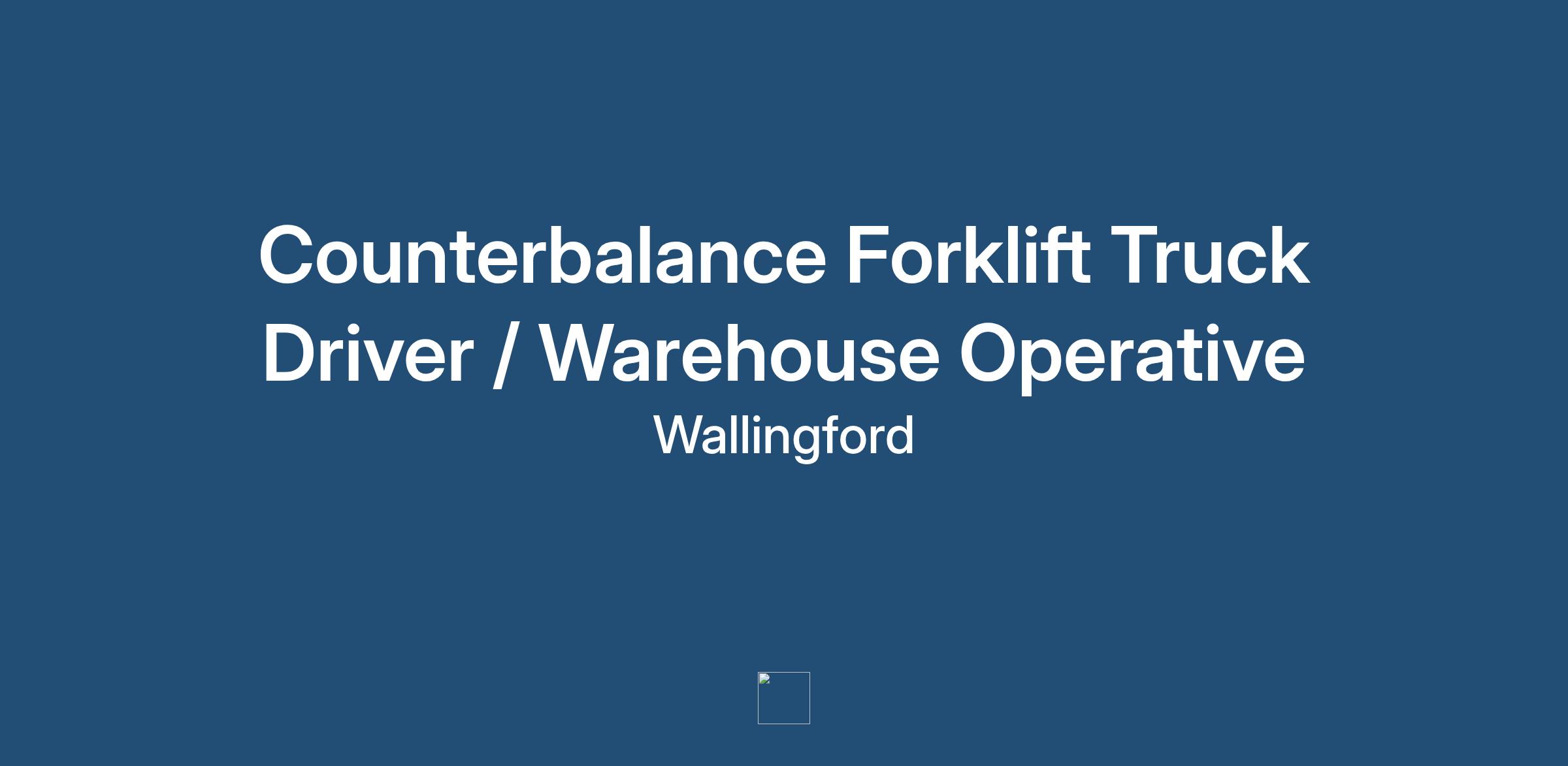 Position; Counterbalnce Forklift Truck Driver / Warehouse Operative