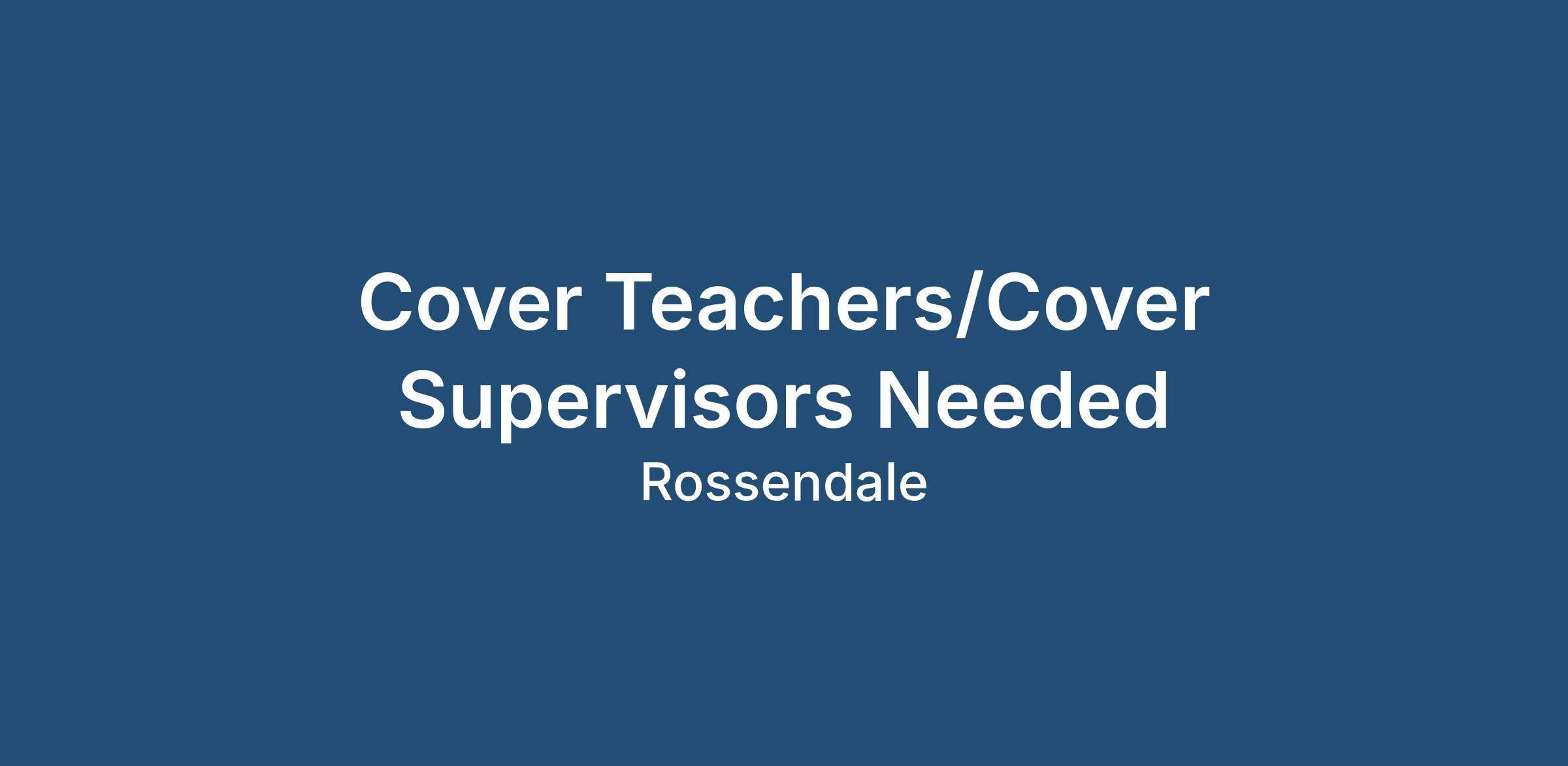 Cover Teachers/Cover Supervisors Needed