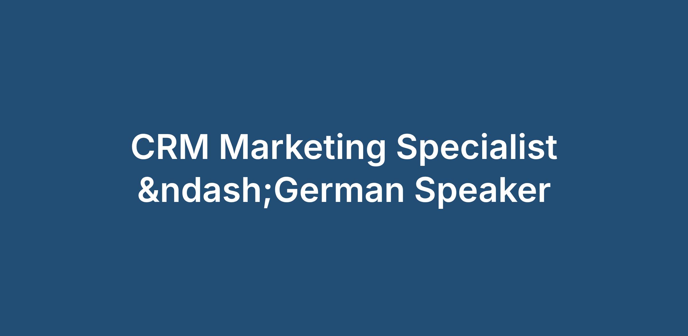 CRM Marketing Specialist –German Speaker