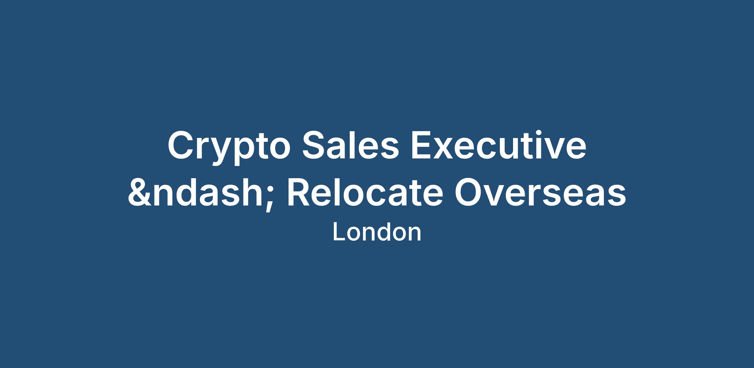 Crypto Sales Executive – Relocate Overseas