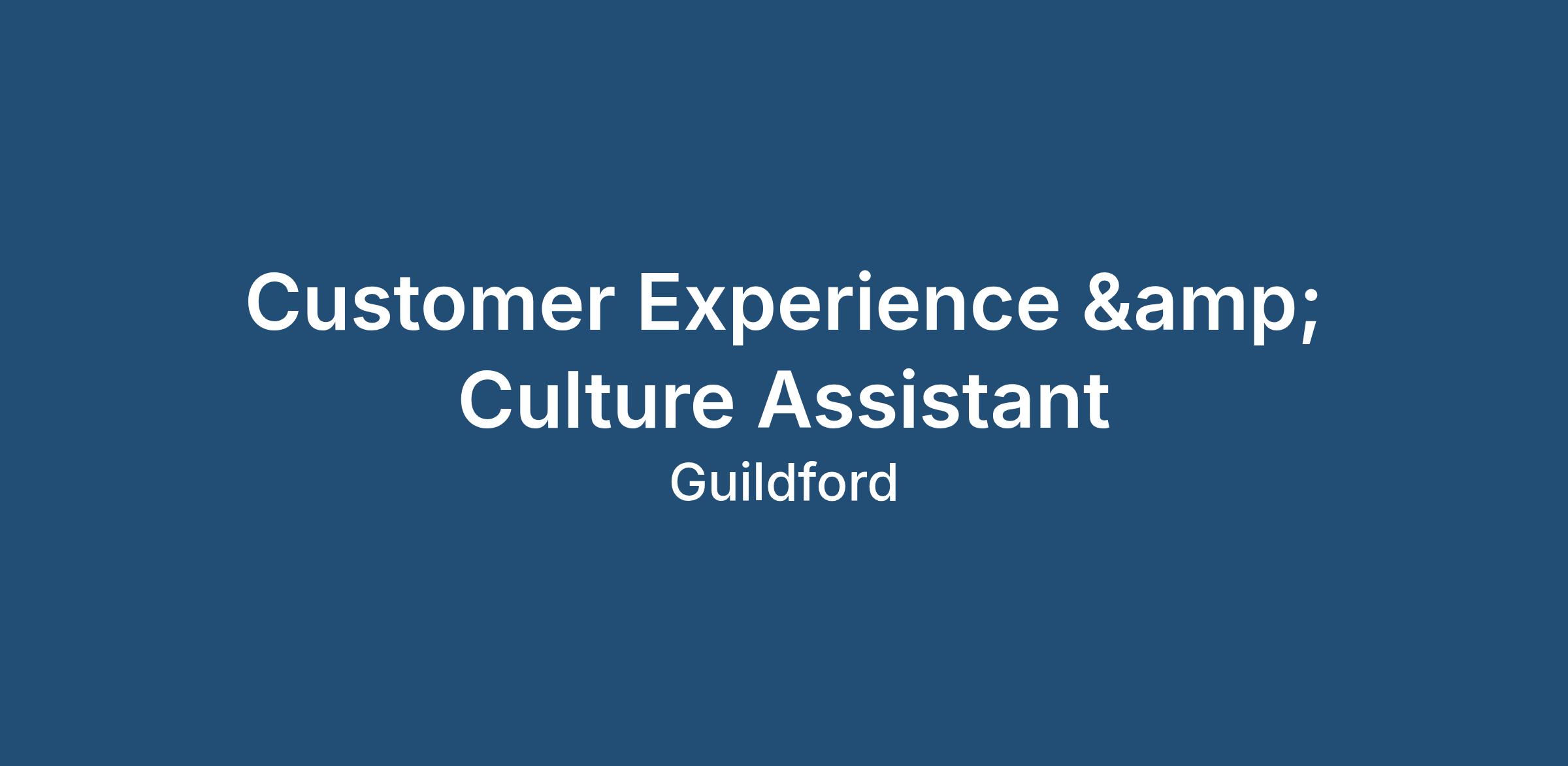 One a month travel to Luton officeOur client is growing family run business, where they focus on providing exceptional customer service, they are now an experienced Customer Experience / Culture Assistant to join a fast paced team based in Guildford.
