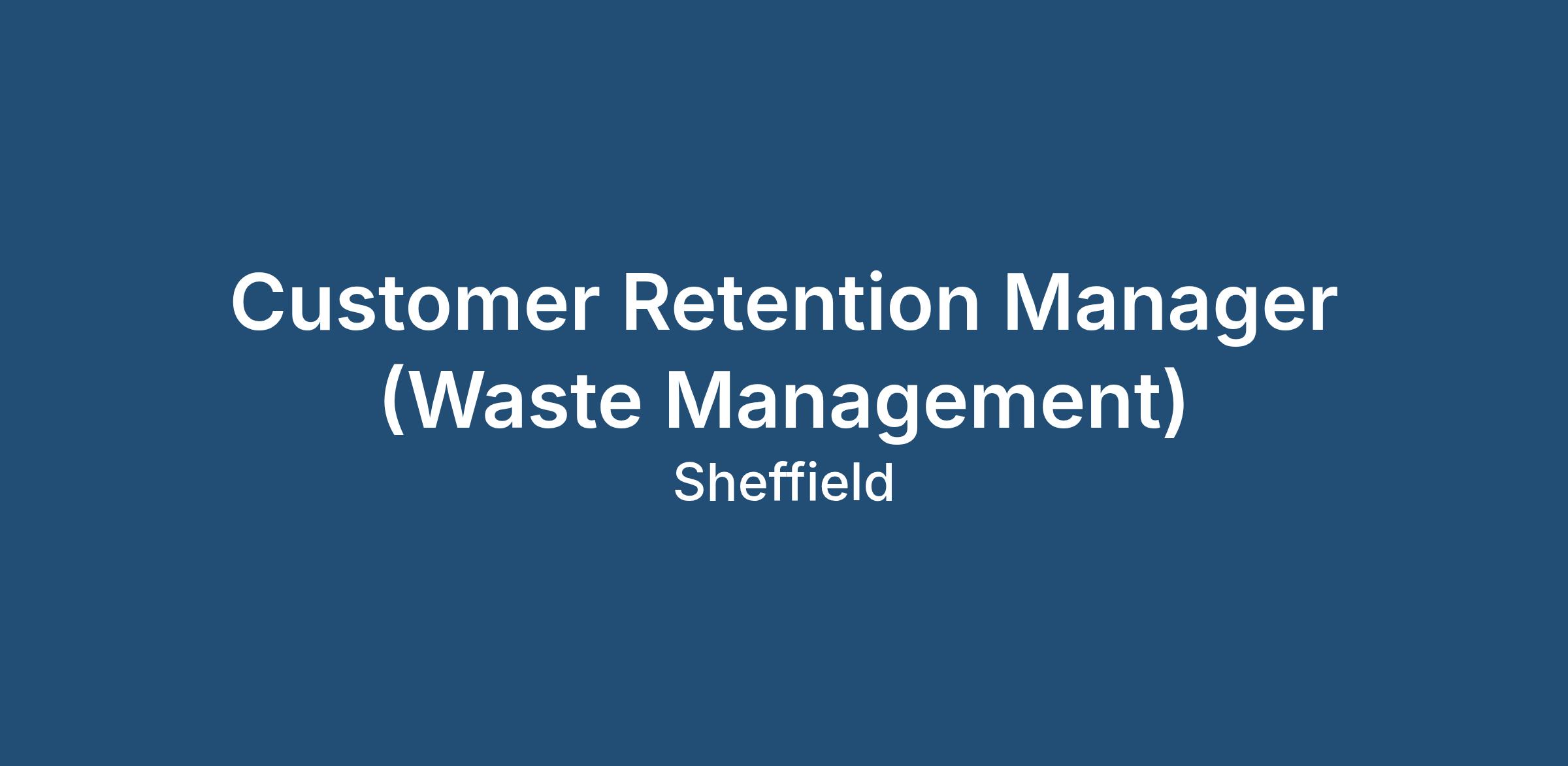 Keywords: Client Retention Manager, Retention Advisor, Customer Care, Waste Management, Call Centre, Account Retention, Service Recovery, Objection Handling, Customer Experience, CRM Systems, Sheffield