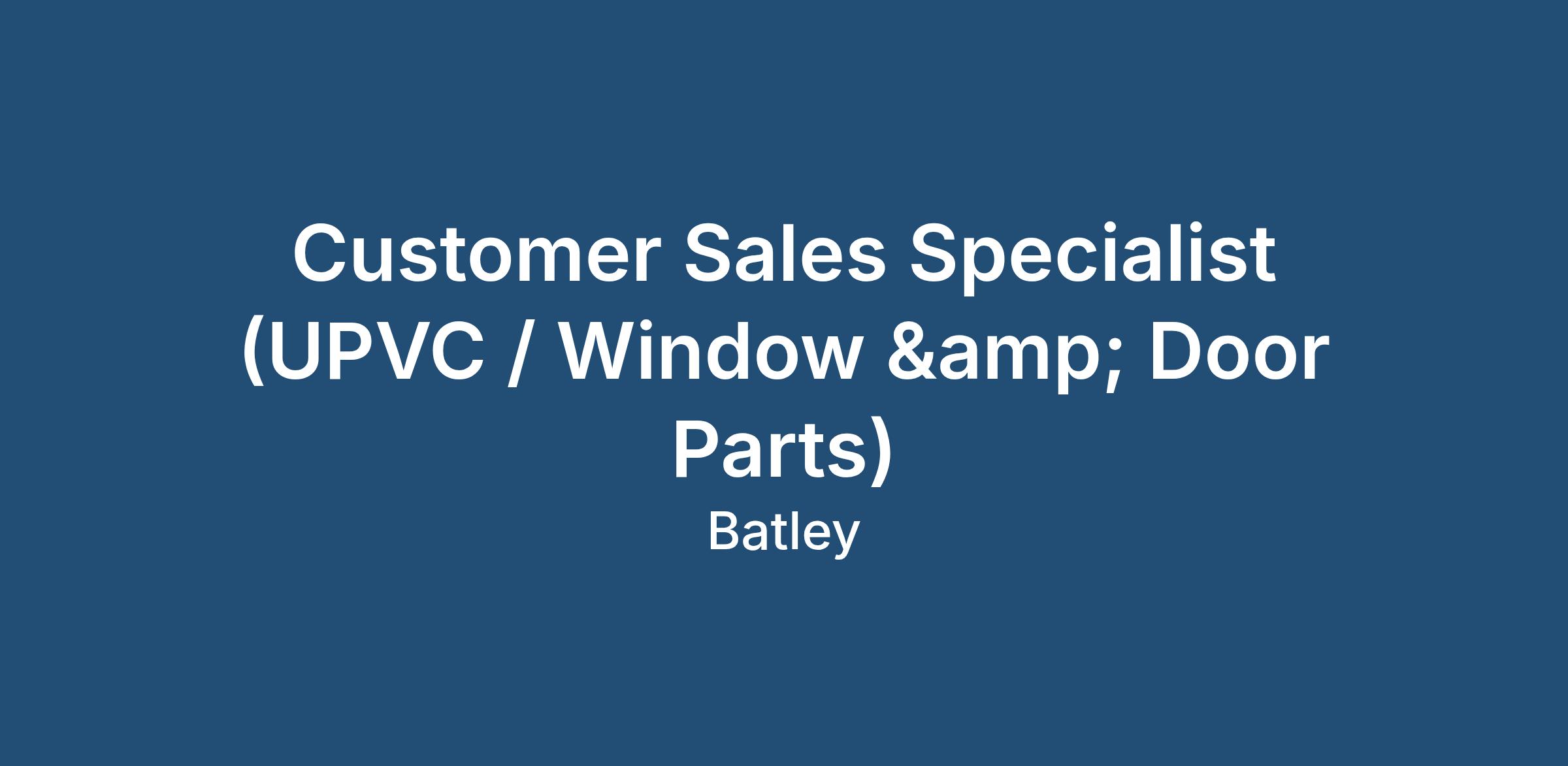 Customer Sales Specialist (UPVC / Window & Door Parts)