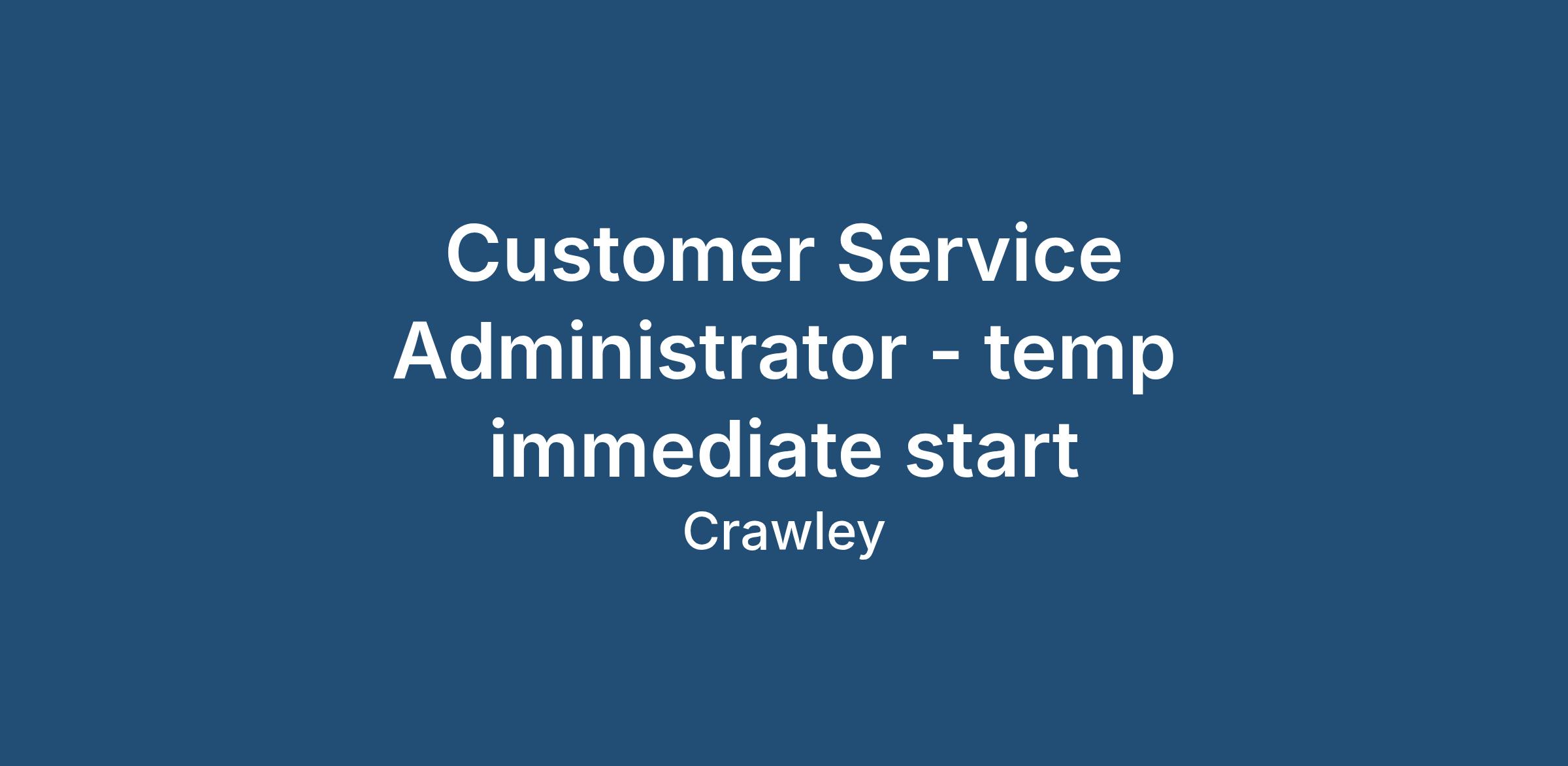 Customer Service Administrator - temp immediate start