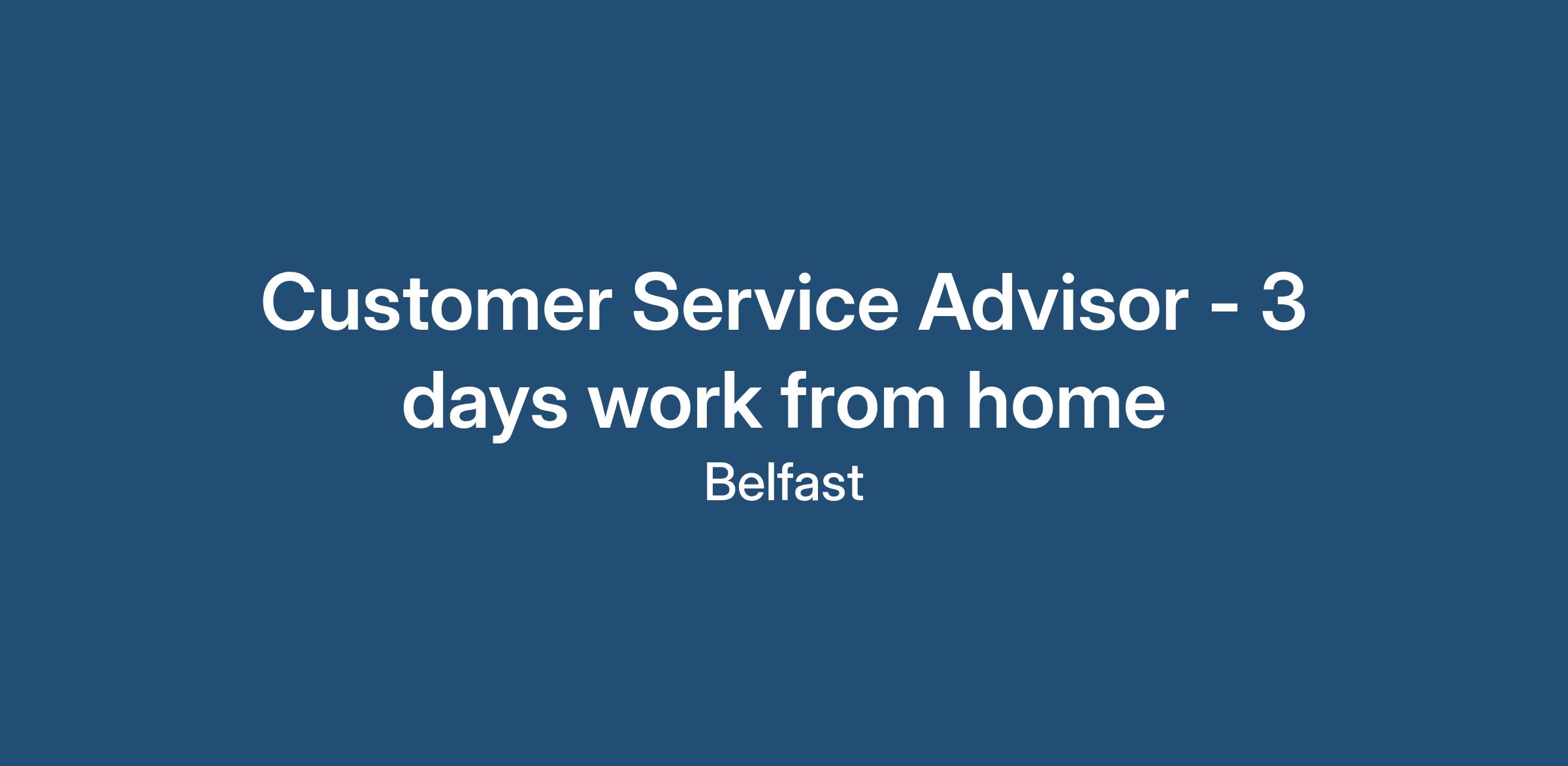 You will be based out of their office in Belfast representing my client and offering a world class service to their customers who are a leading household name.