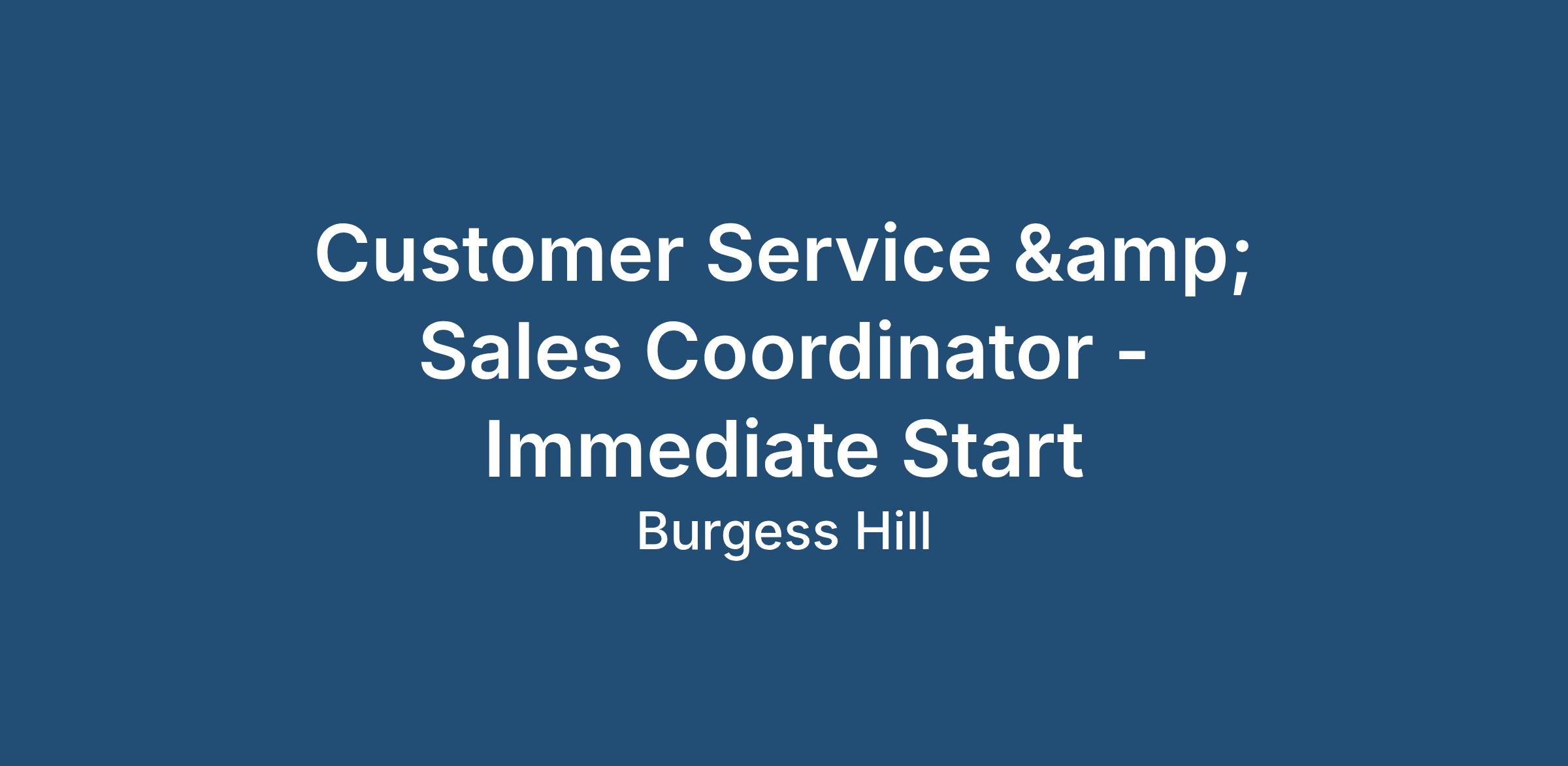 Customer Service & Sales Coordinator - Start Immediately!