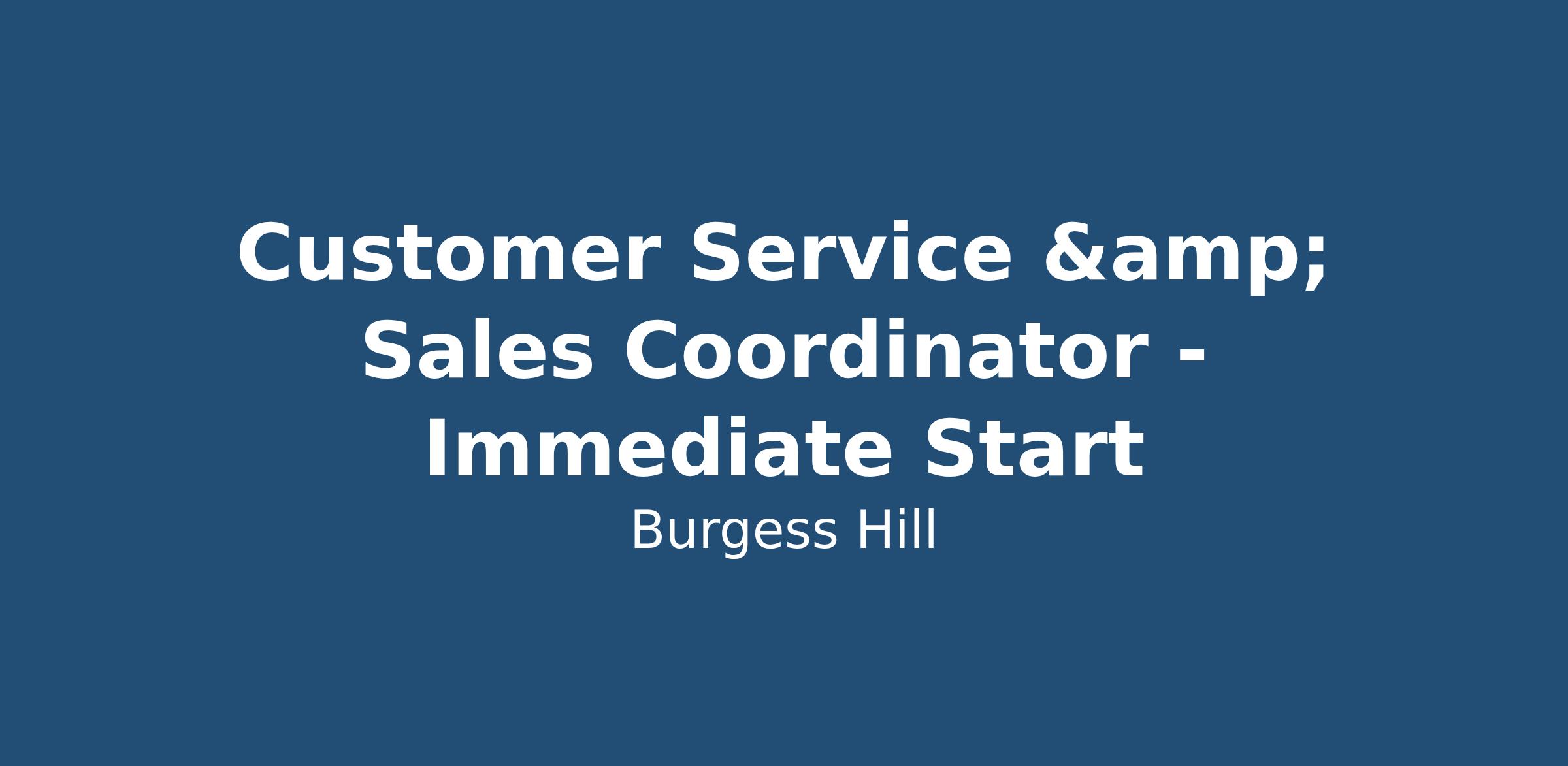 Customer Service & Sales Coordinator - Start Immediately!