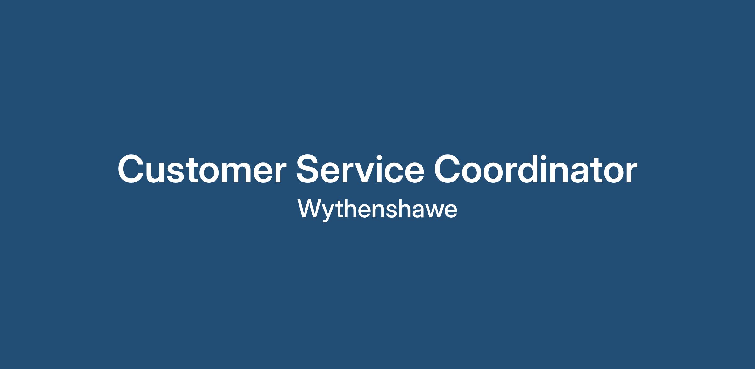 Customer Service Co-ordinator Wythenshawe £29,000doe