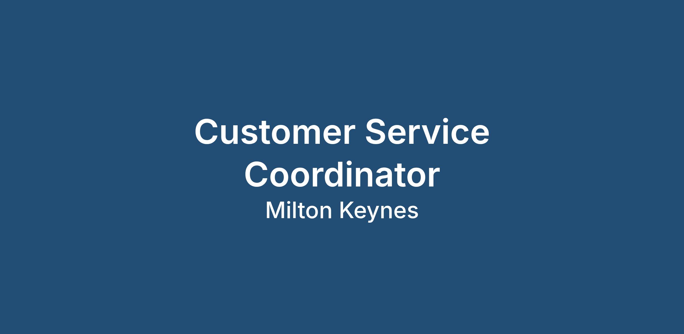 WSR is recruiting for a Customer Service Coordinator for our esteemed client in Milton Keynes.