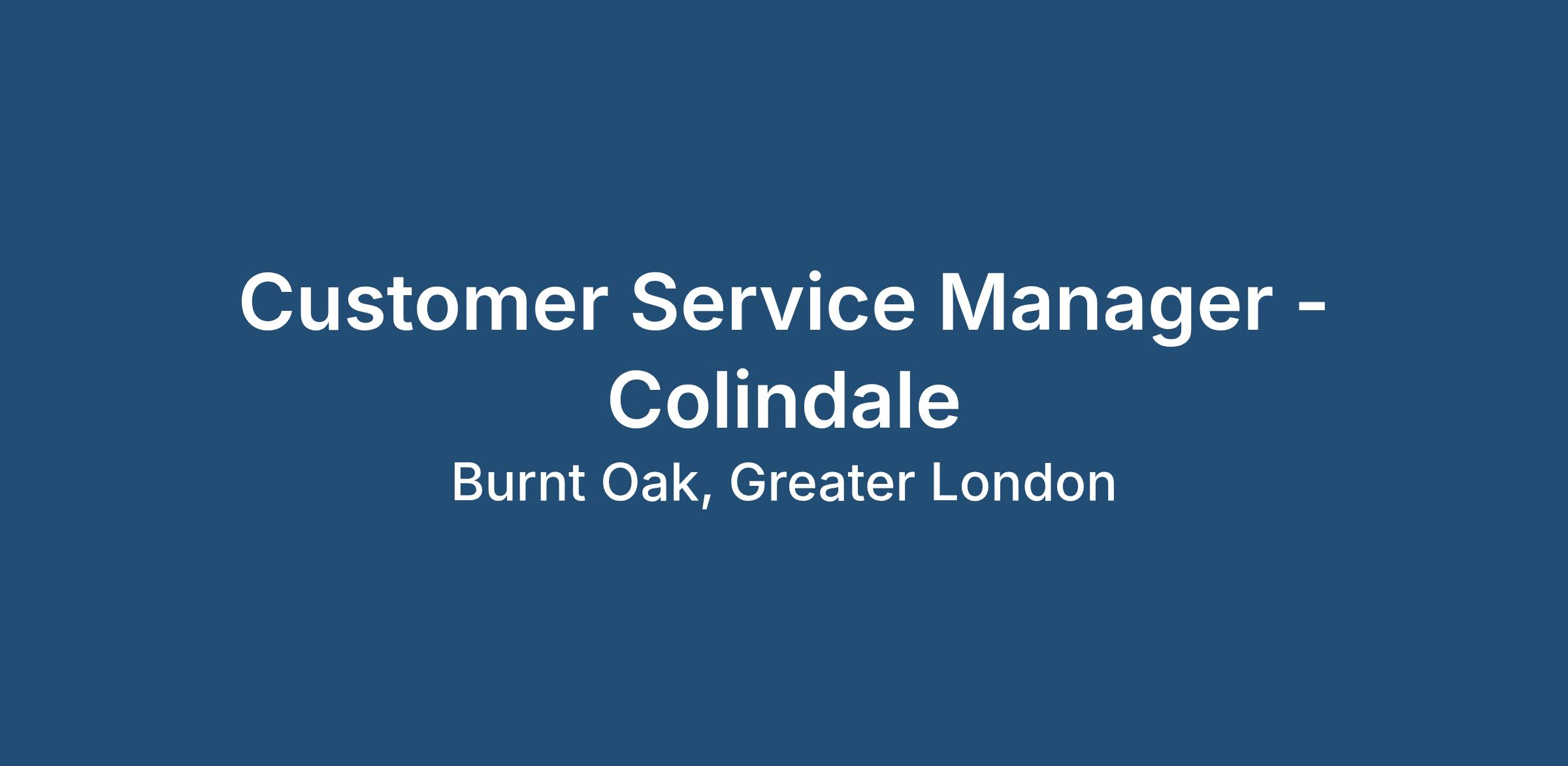 Customer Service Manager - Colindale