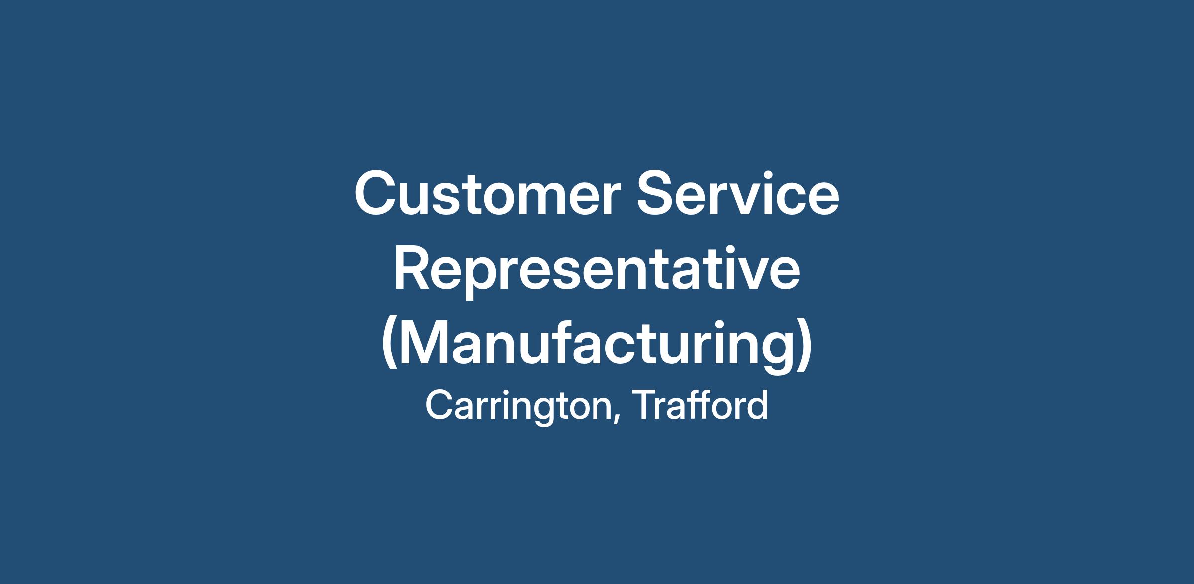 Customer, Service, Customer Service, Representative, Technical Support, Manufacturing, Product Support, Account Management, Packaging, Maths, Dimensions, Training, Progression, Bonuses, Carrington, Trafford, Irlam, Eccles, Altrincham, Warrington, Leigh, Lymm, Sale, Stretford, Worsley, Salford, Swinton, Manchester
