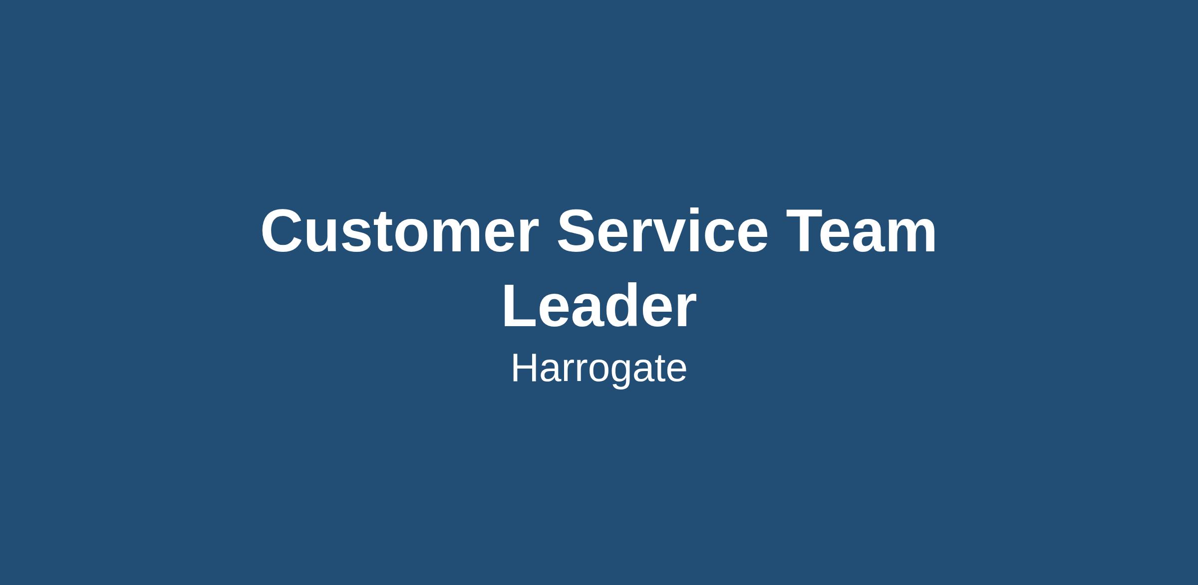 Customer Service Team Leader – Harrogate - £45k - £55k + excellent benefits