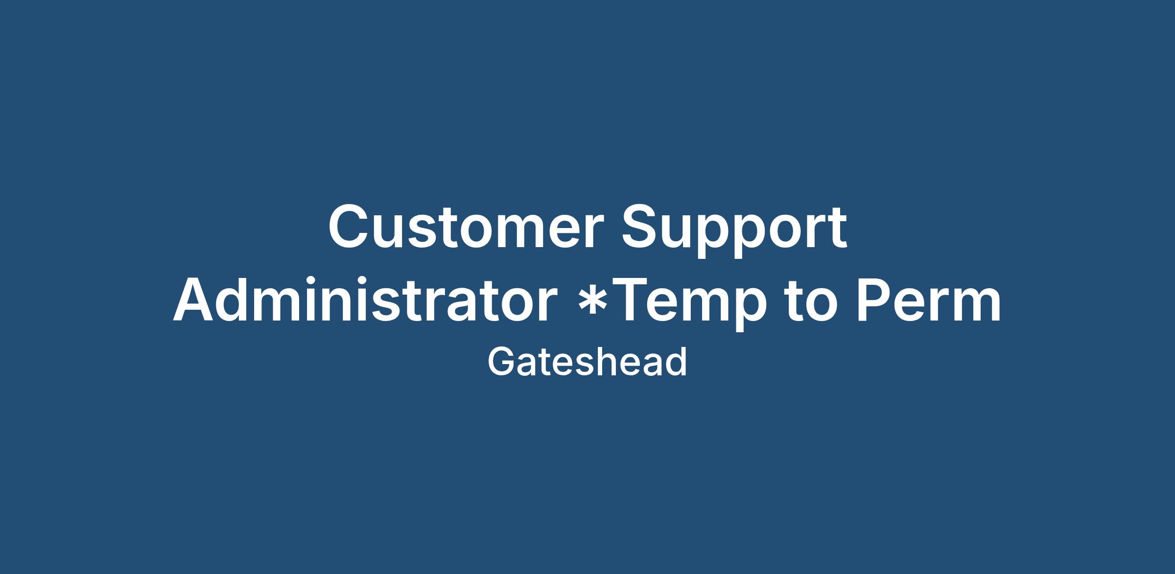 Customer Support Administrator - Immediate Start - Temp to Perm Contract!