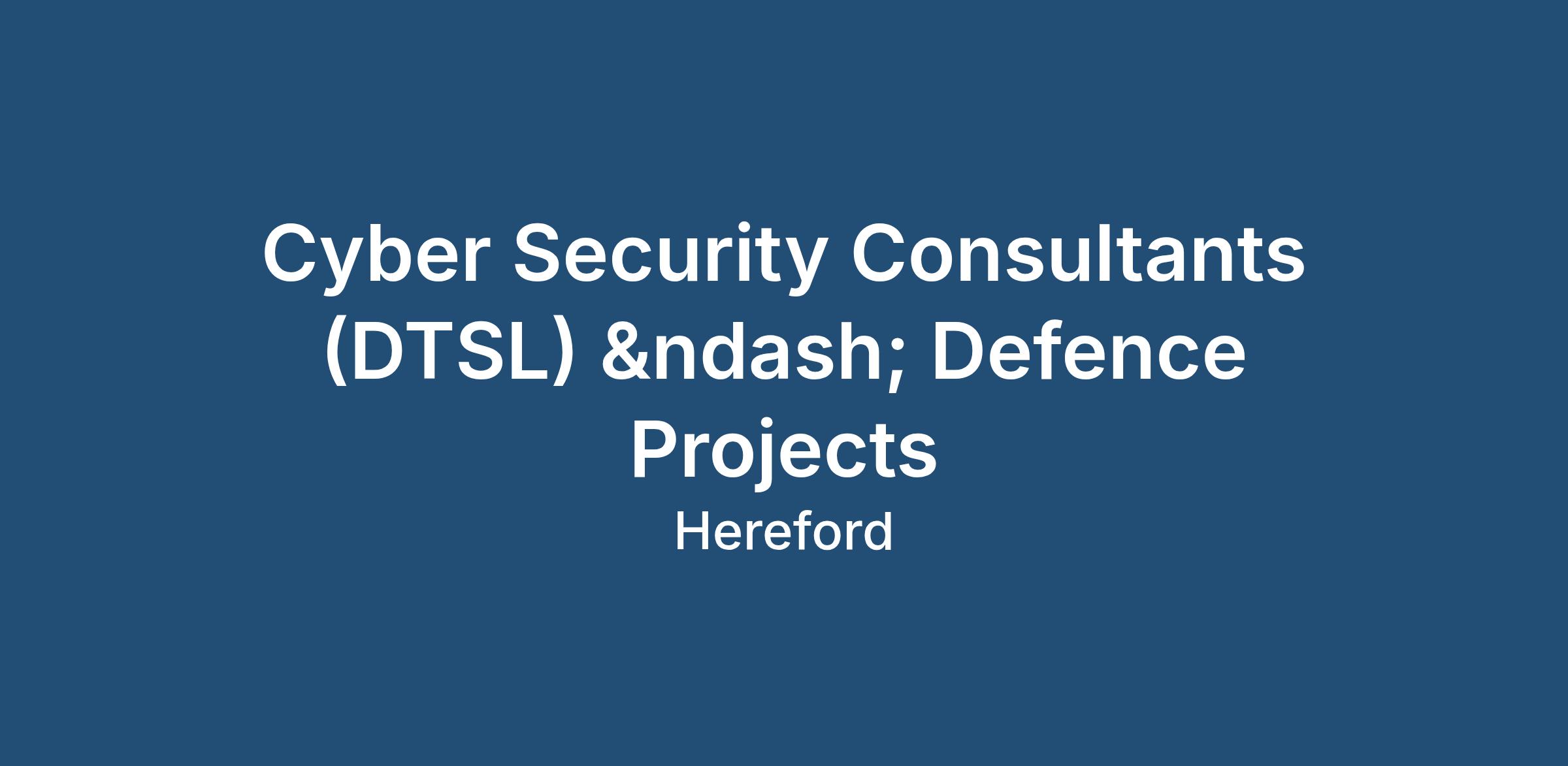 Cyber Security Consultants (DTSL) – Defence Projects