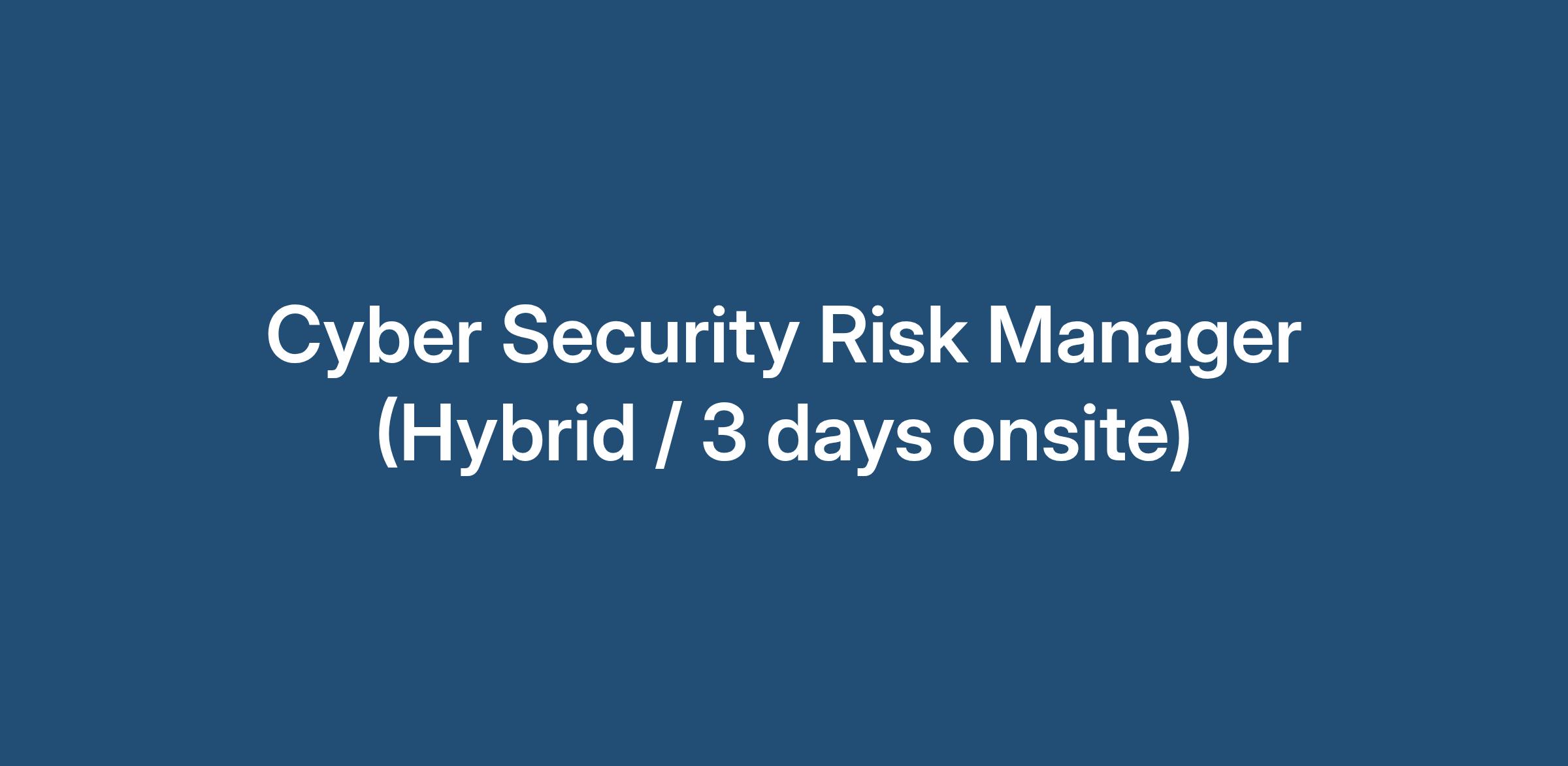 Cyber Security Risk Manager (Hybrid / 3 days onsite)
