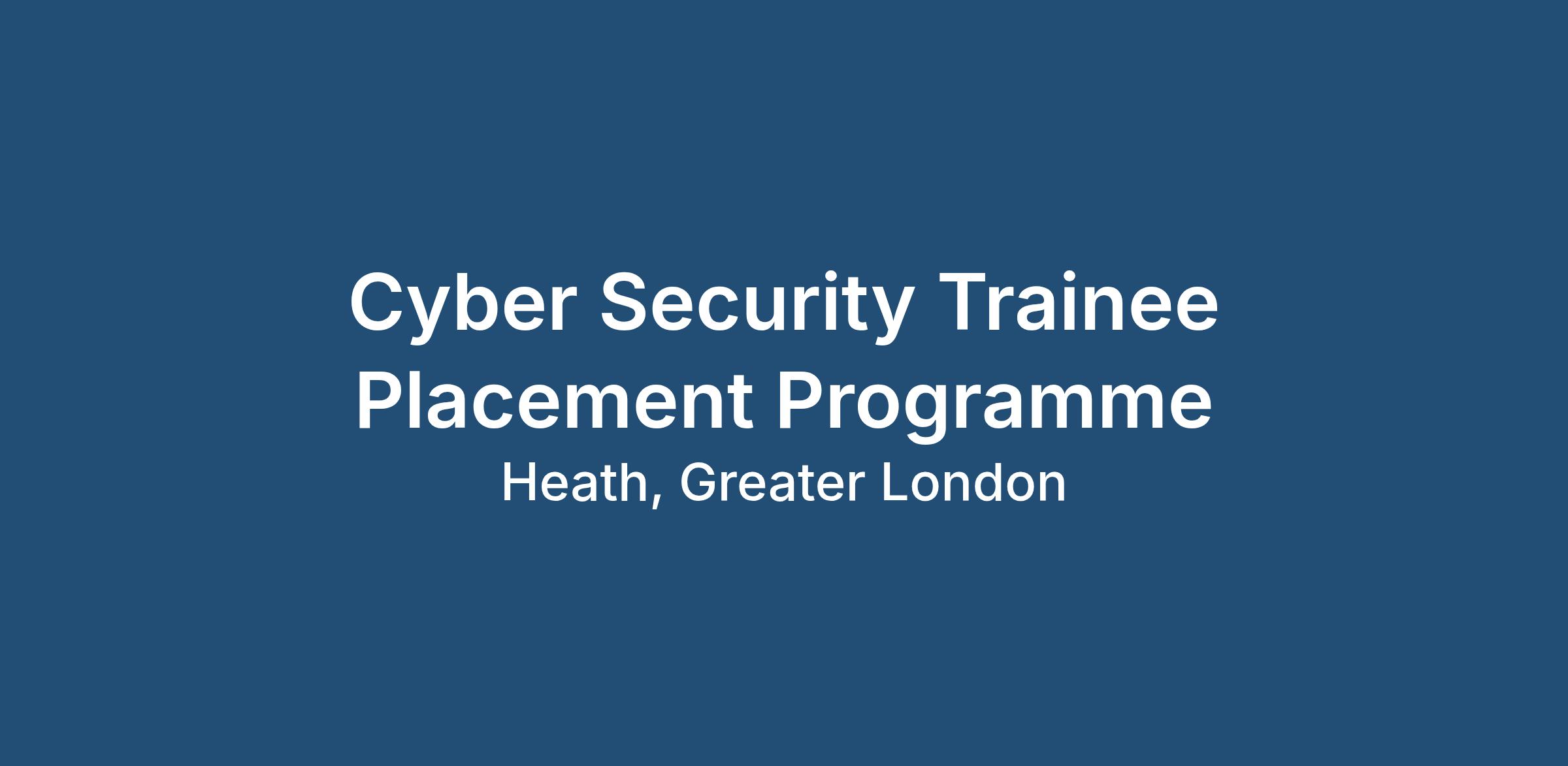 Cyber Security Trainee Placement Programme | £28K–£40K