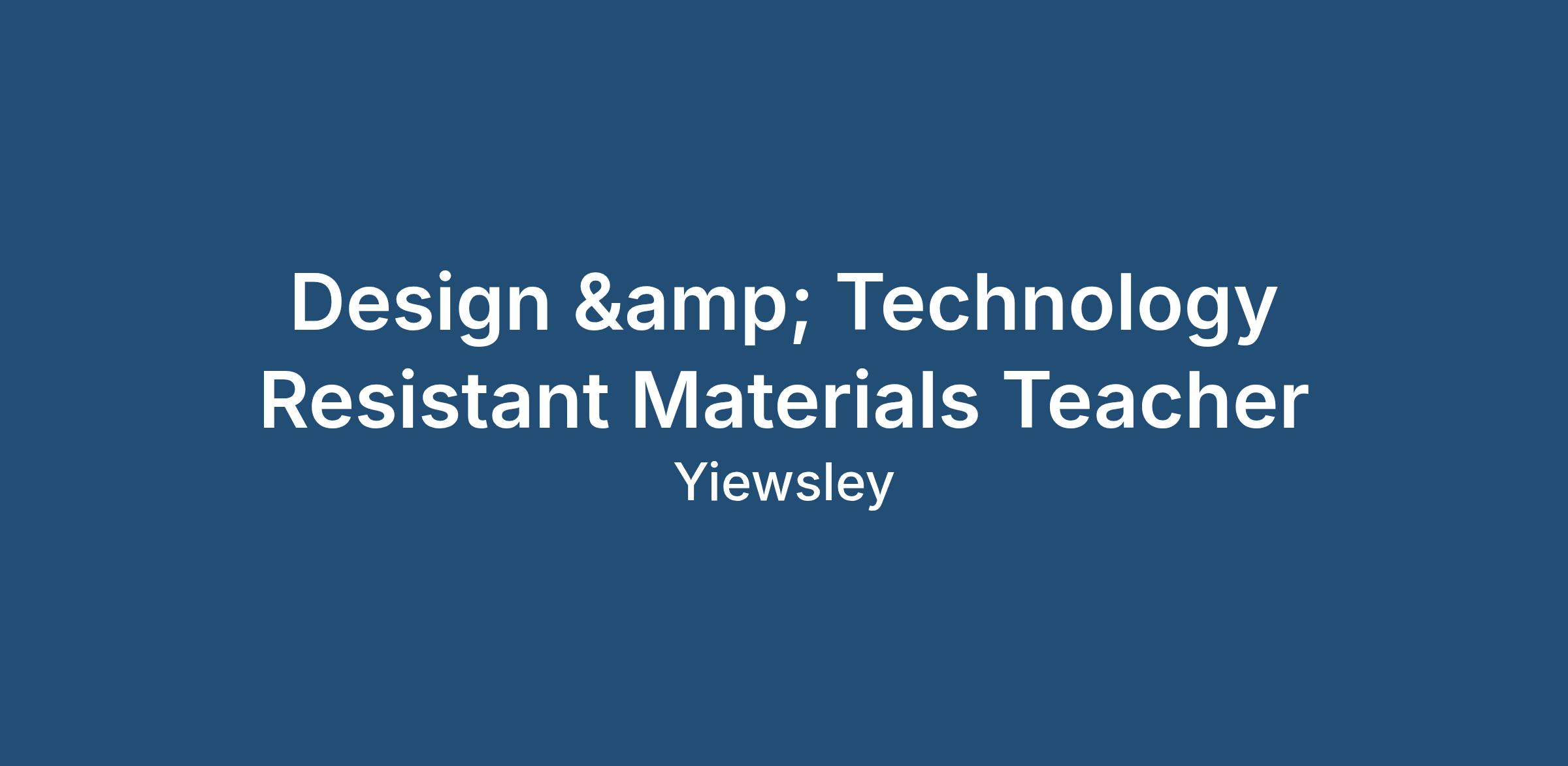 Design & Technology Resistant Materials Teacher