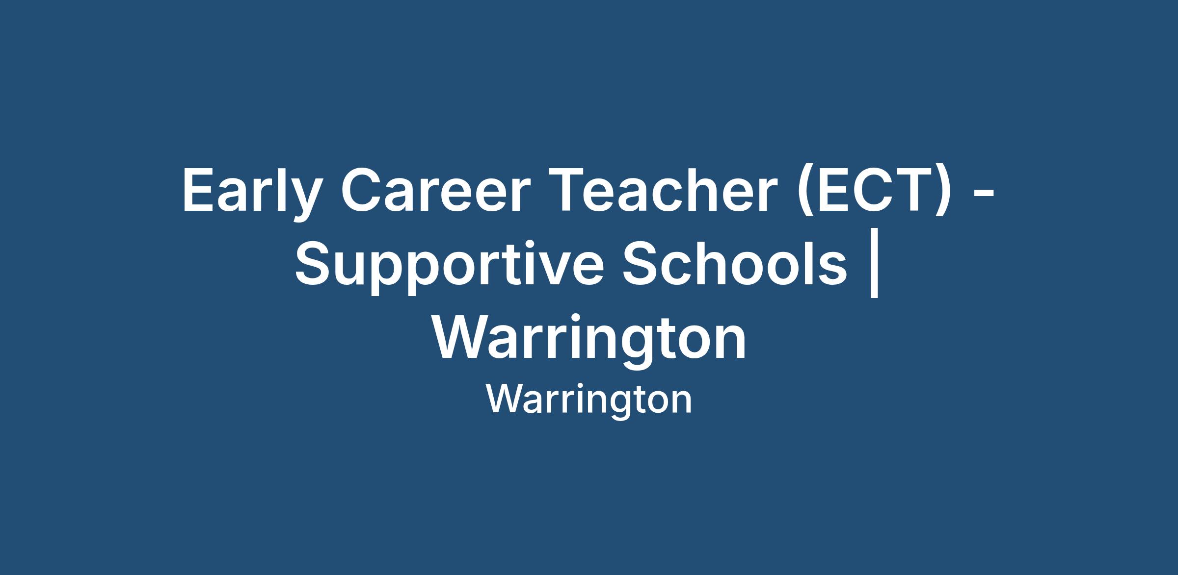 Early Career Teacher (ECT) - Supportive Schools | Warrington