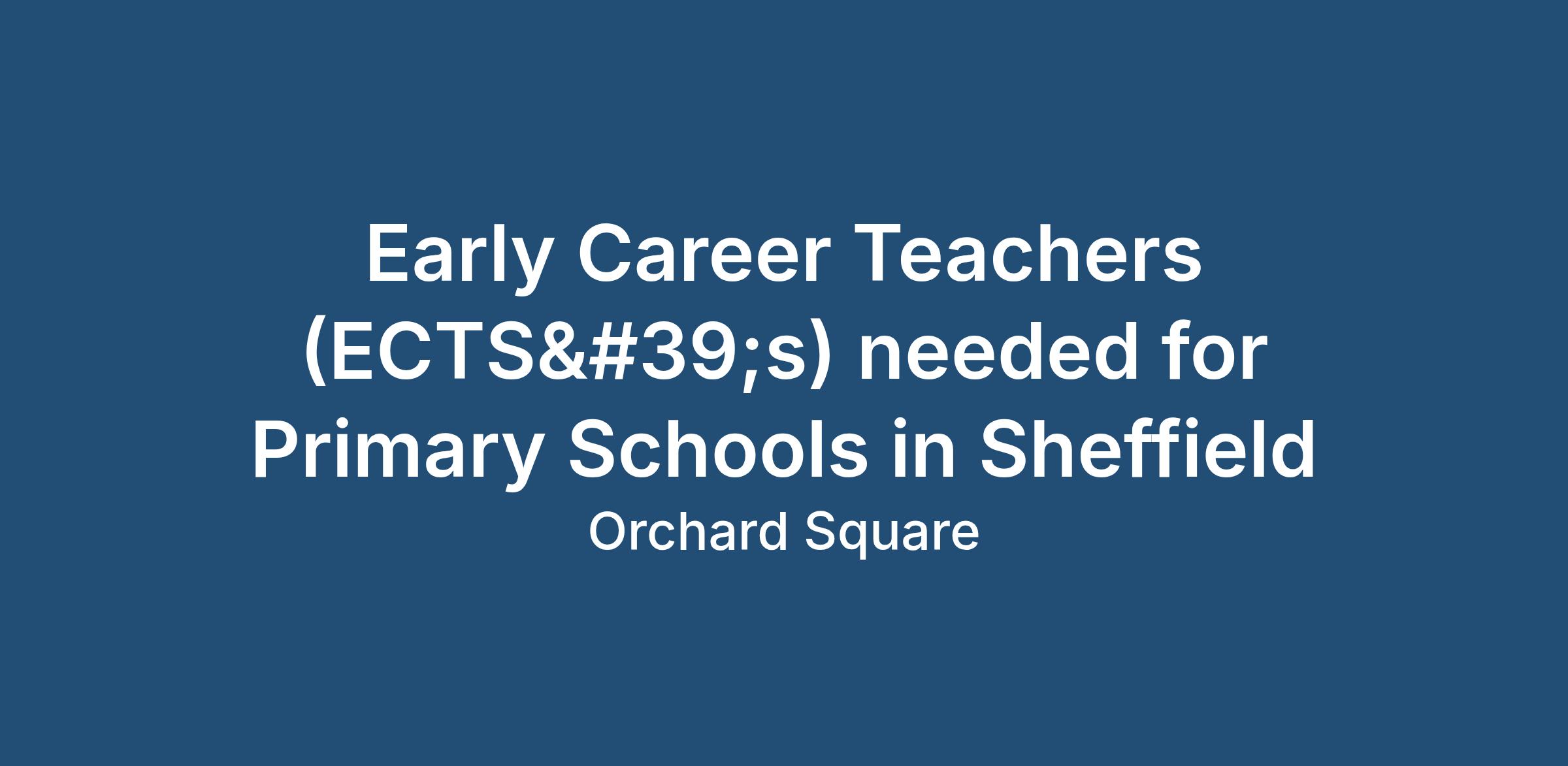 Early Career Teachers (ECTS’s) needed for Primary Schools in Sheffield