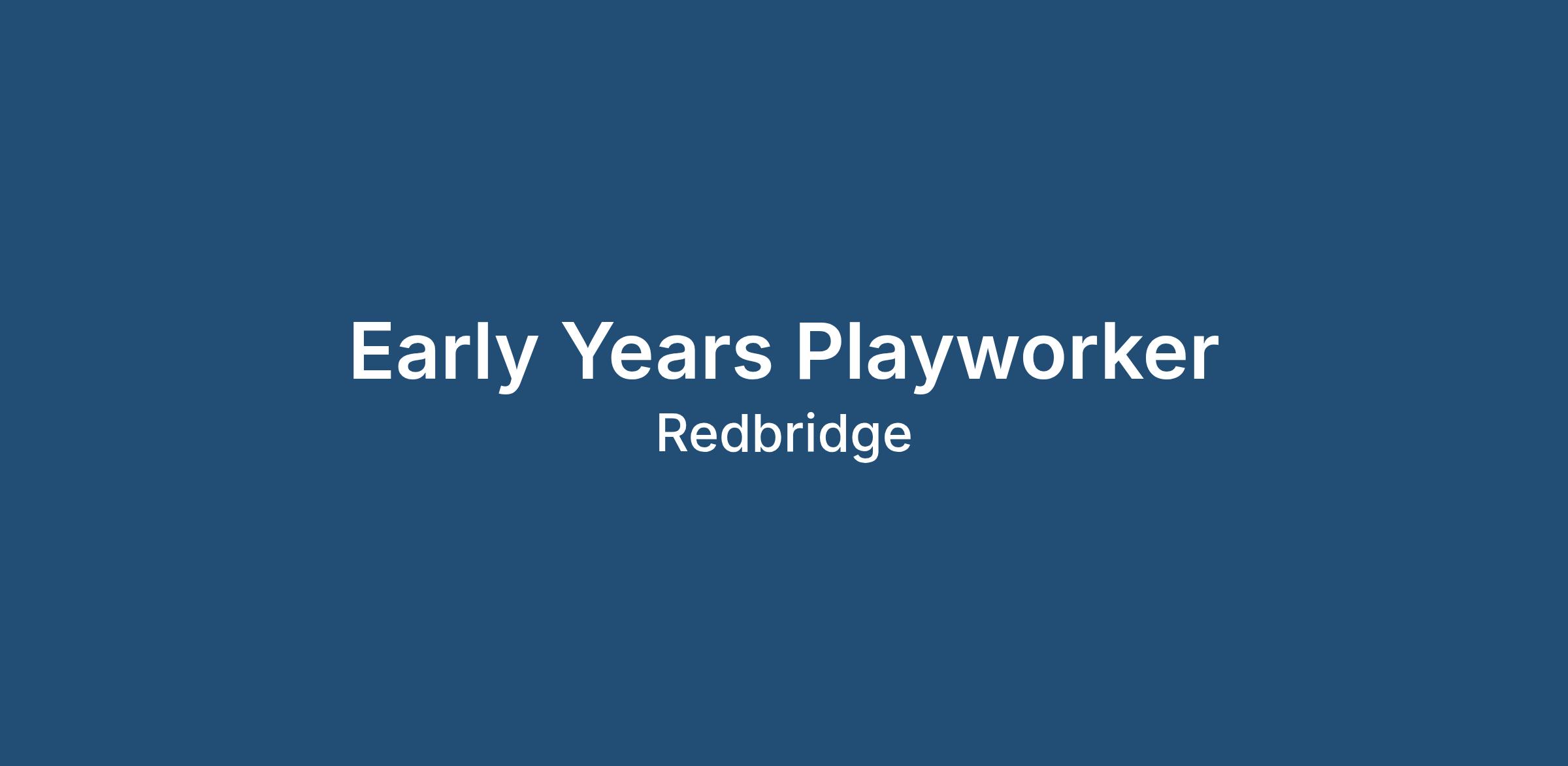 * New opportunity in Redbridge for an Early Years Playworker