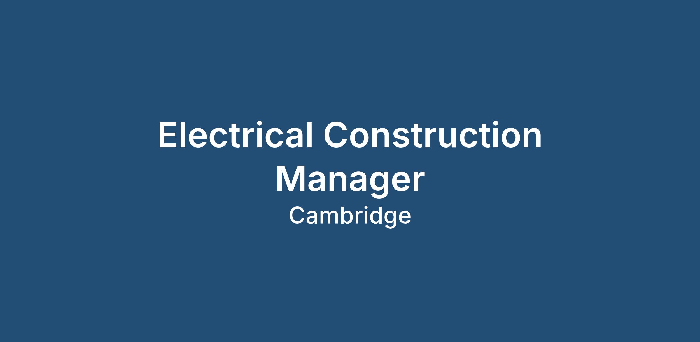 Electrical Construction Manager Opportunity – Tier 1 Main Contractor - Cambridge