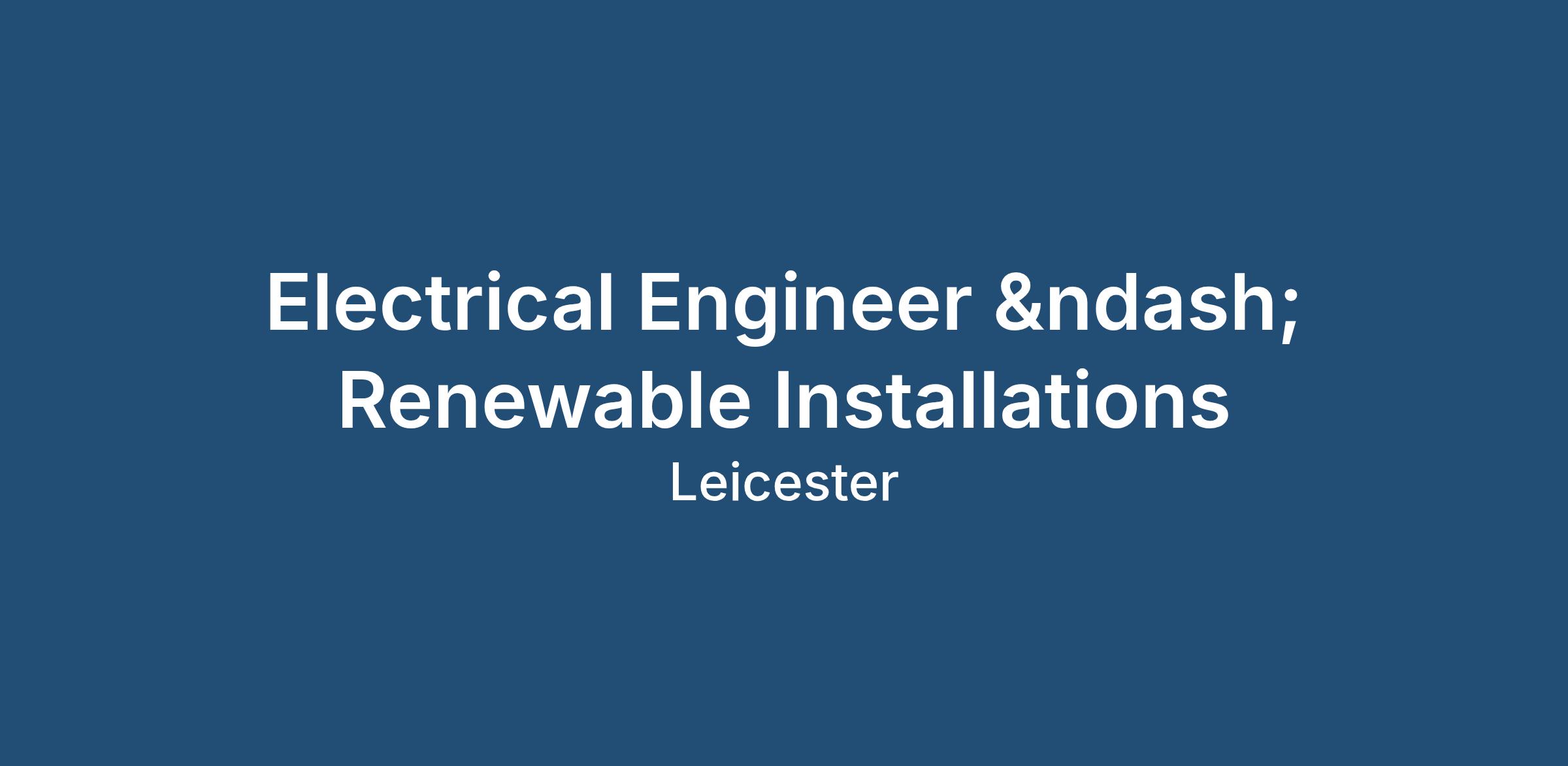 Electrical Engineer – Renewable Installations