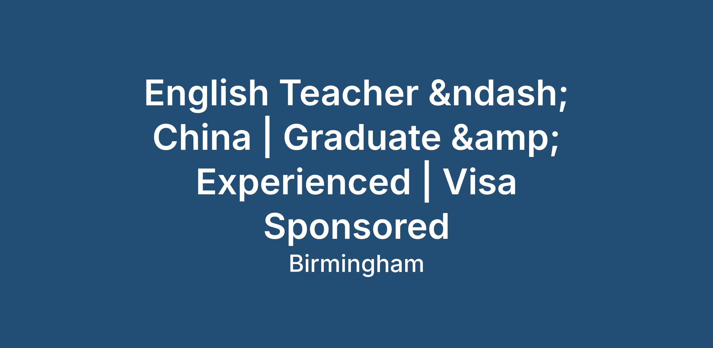 English Teacher – China | Graduate & Experienced | Visa Sponsored