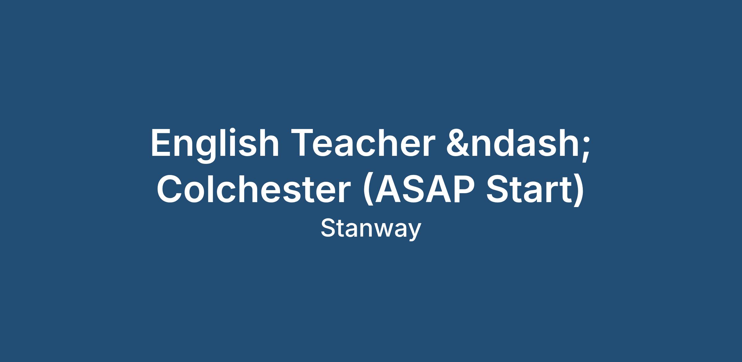 English Teacher – Colchester (ASAP Start)