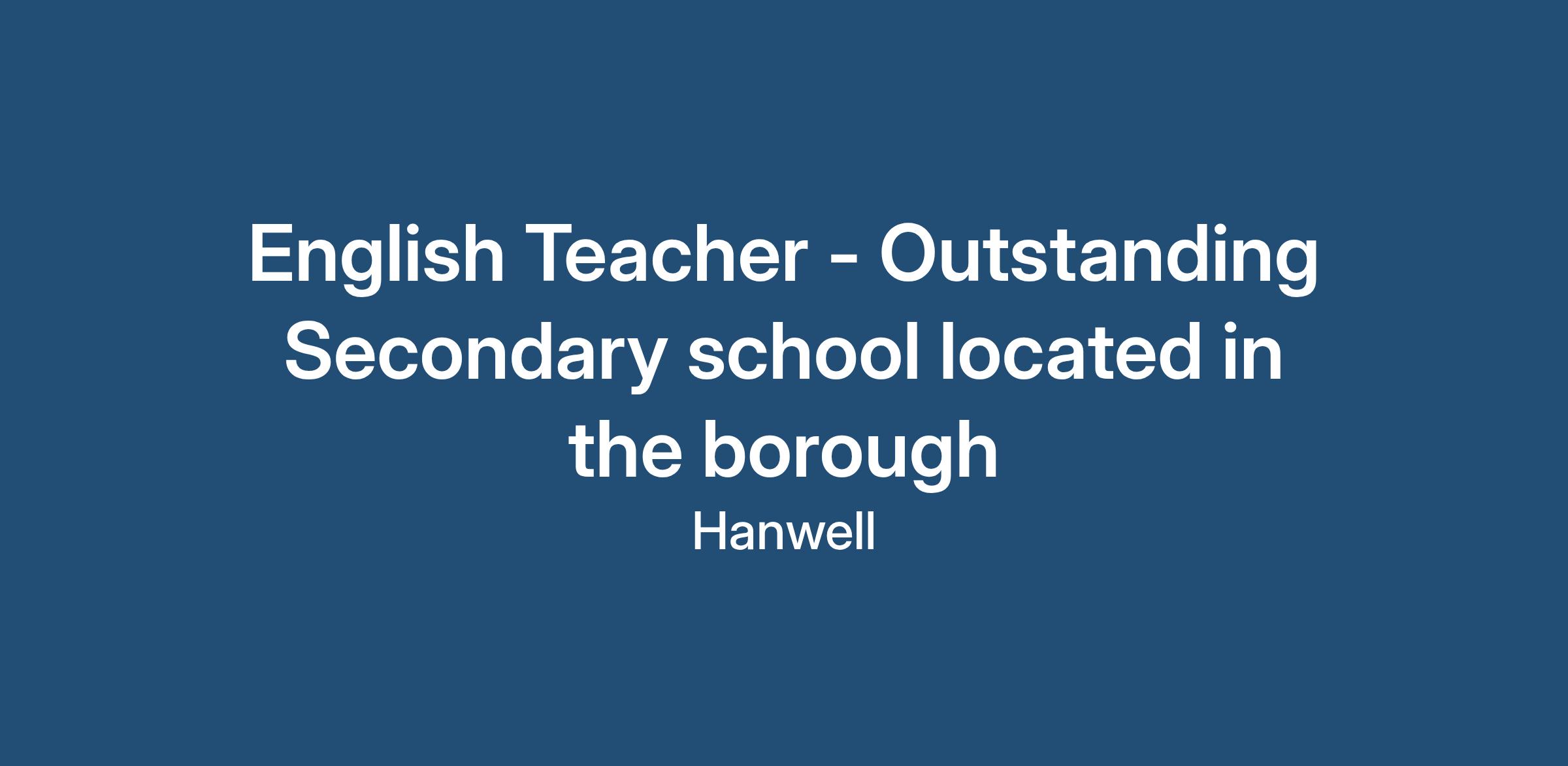 English Teacher - Outstanding Secondary school located in the borough