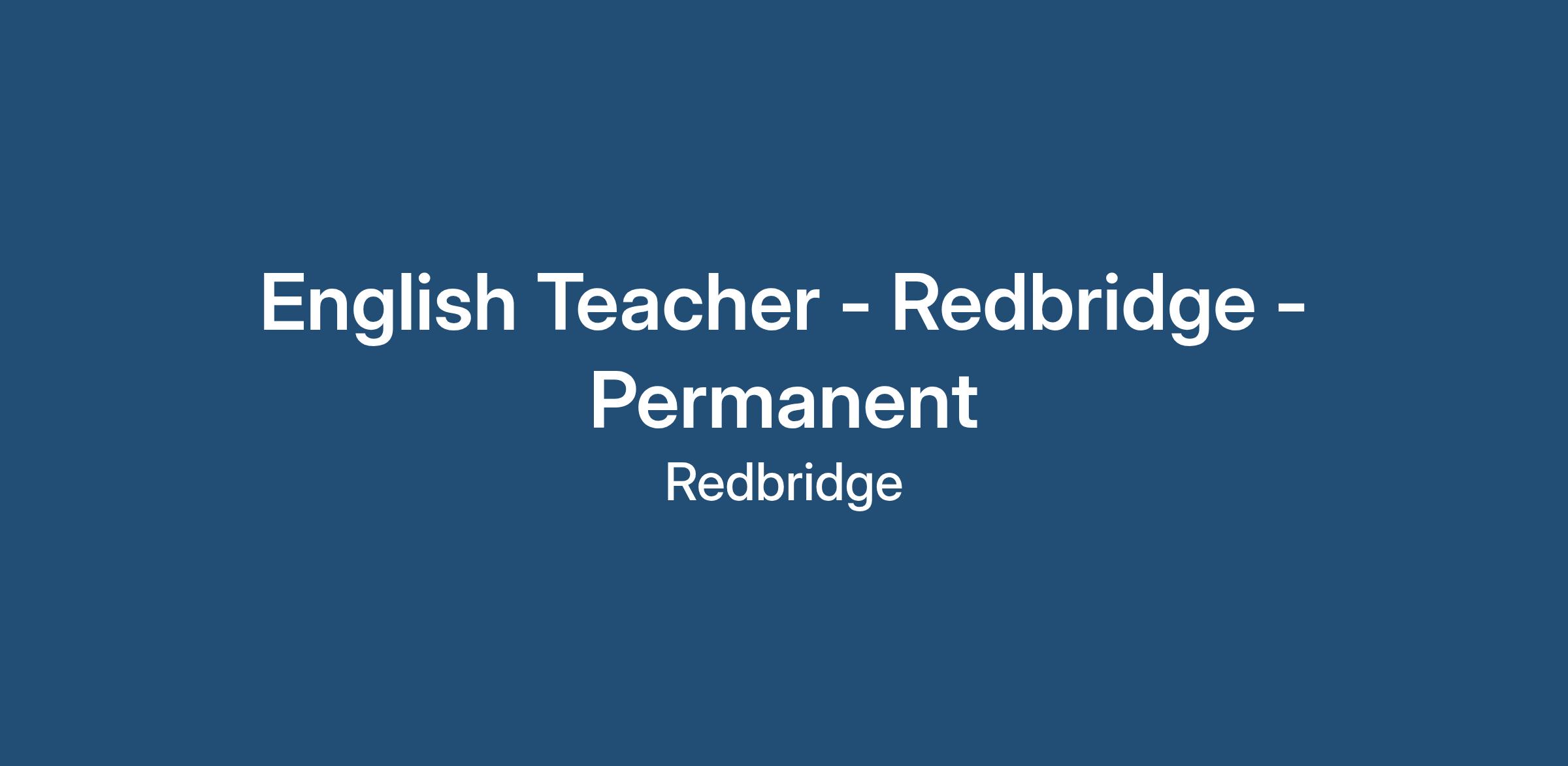Secondary English Teacher - Permanent Position - Redbridge - January 2026 Start