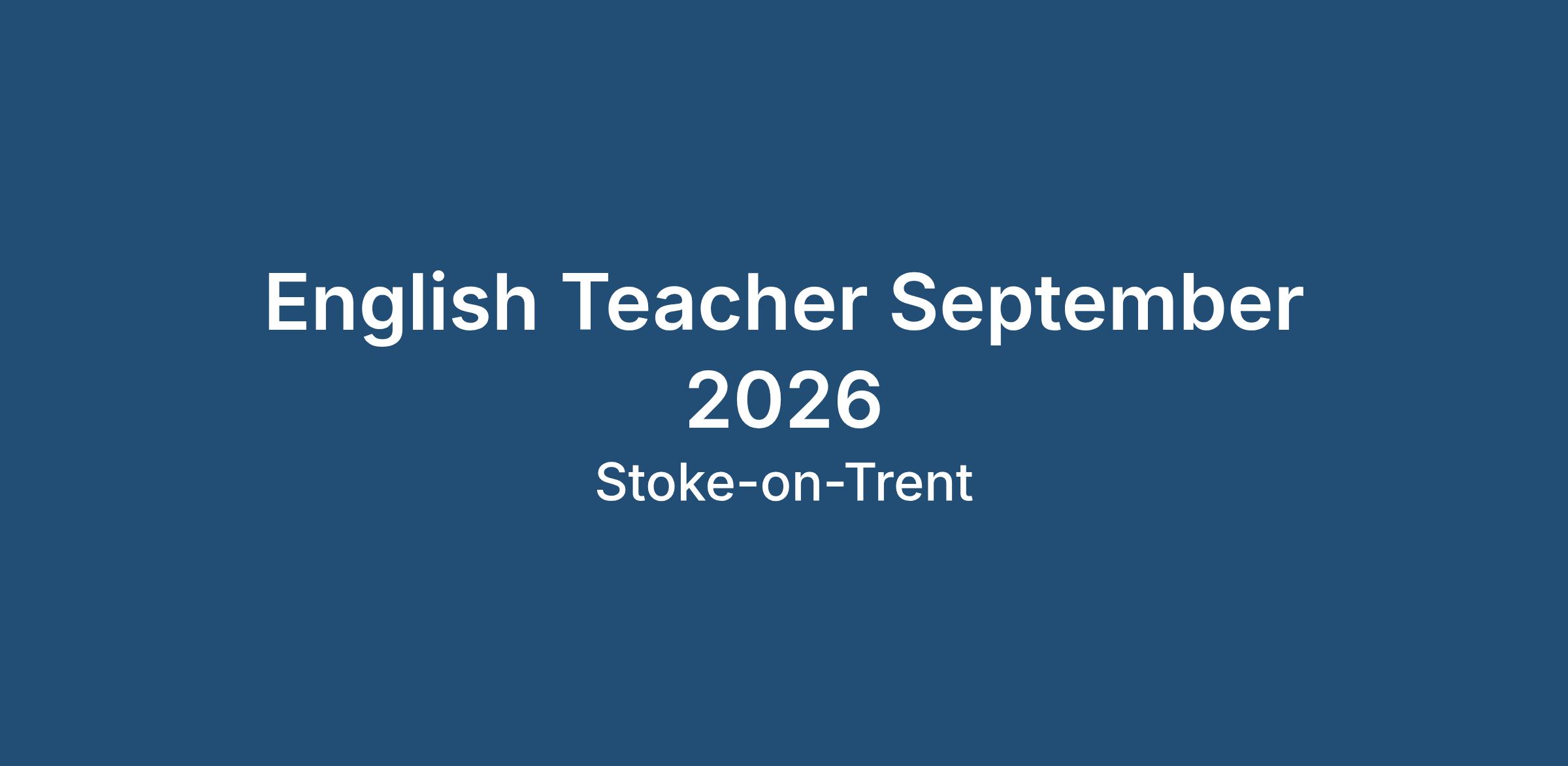 English Teacher - Stoke on Trent | September 2026 Start (New Academic Year)