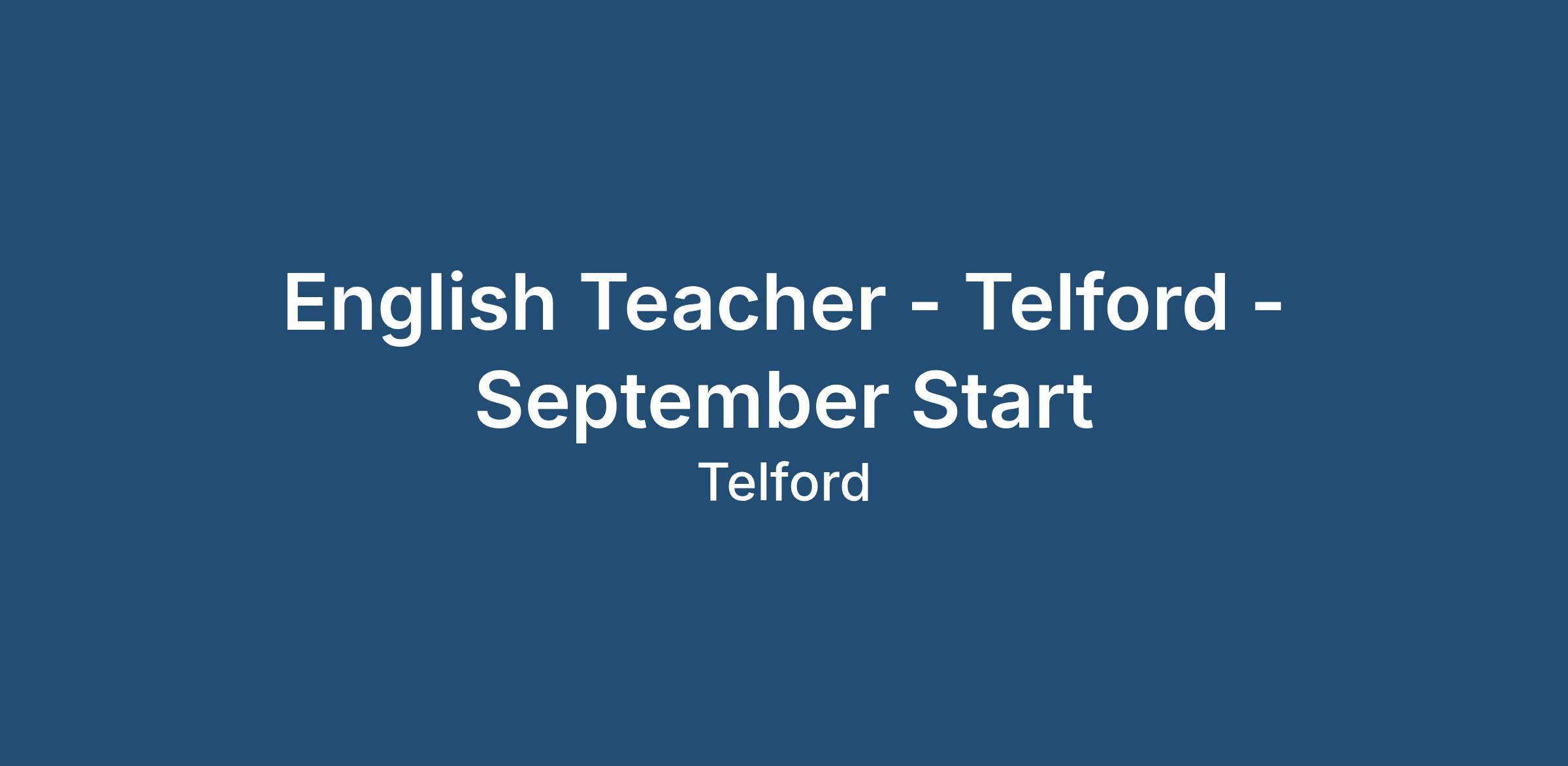 English Teacher - Telford - September Start