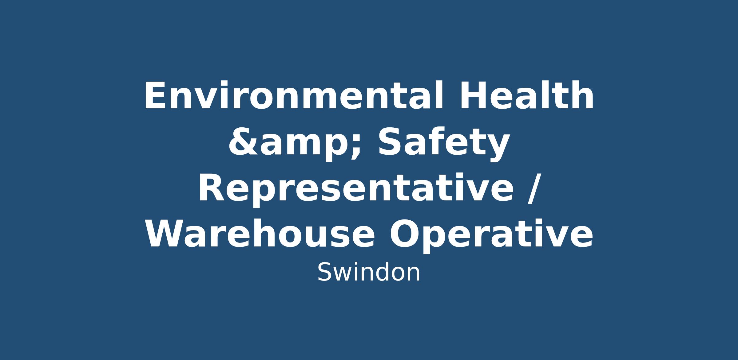 We are currently recruiting for an Environmental Health & Safety Representative / Warehouse Operative to join our client based in Swindon