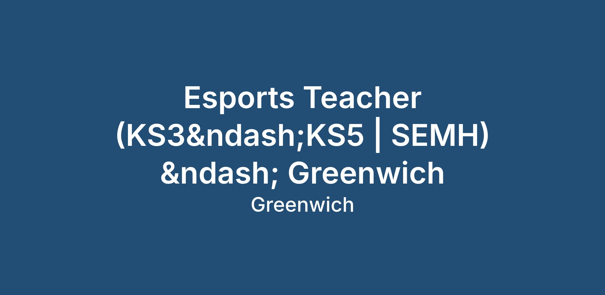 Esports Teacher (KS3–KS5 | SEMH) – Greenwich
