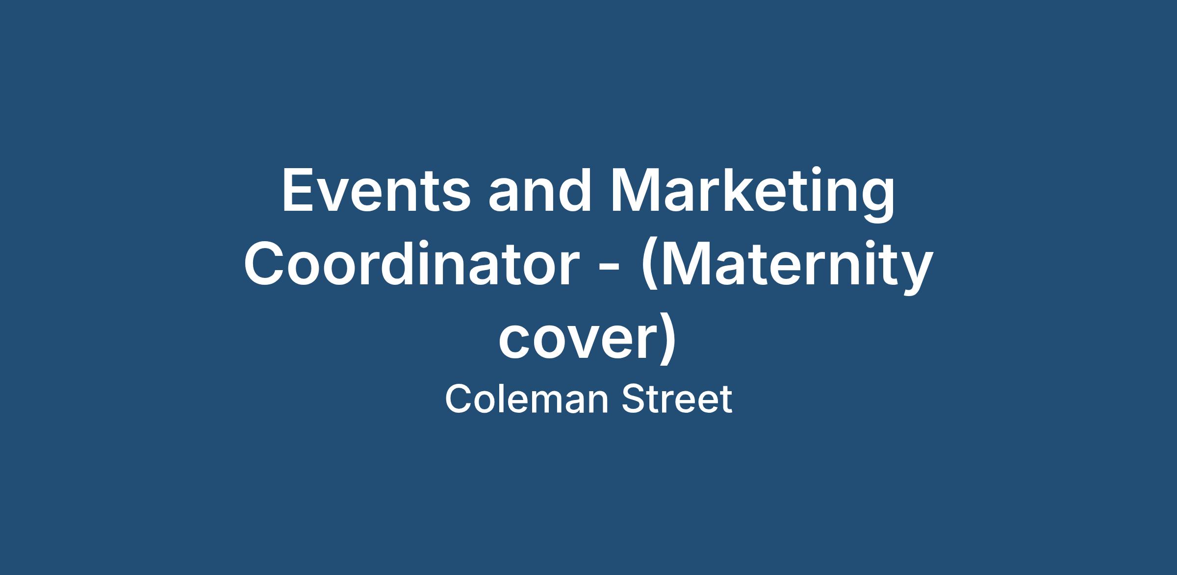 Events & Marketing Coordinator (Maternity Cover)
