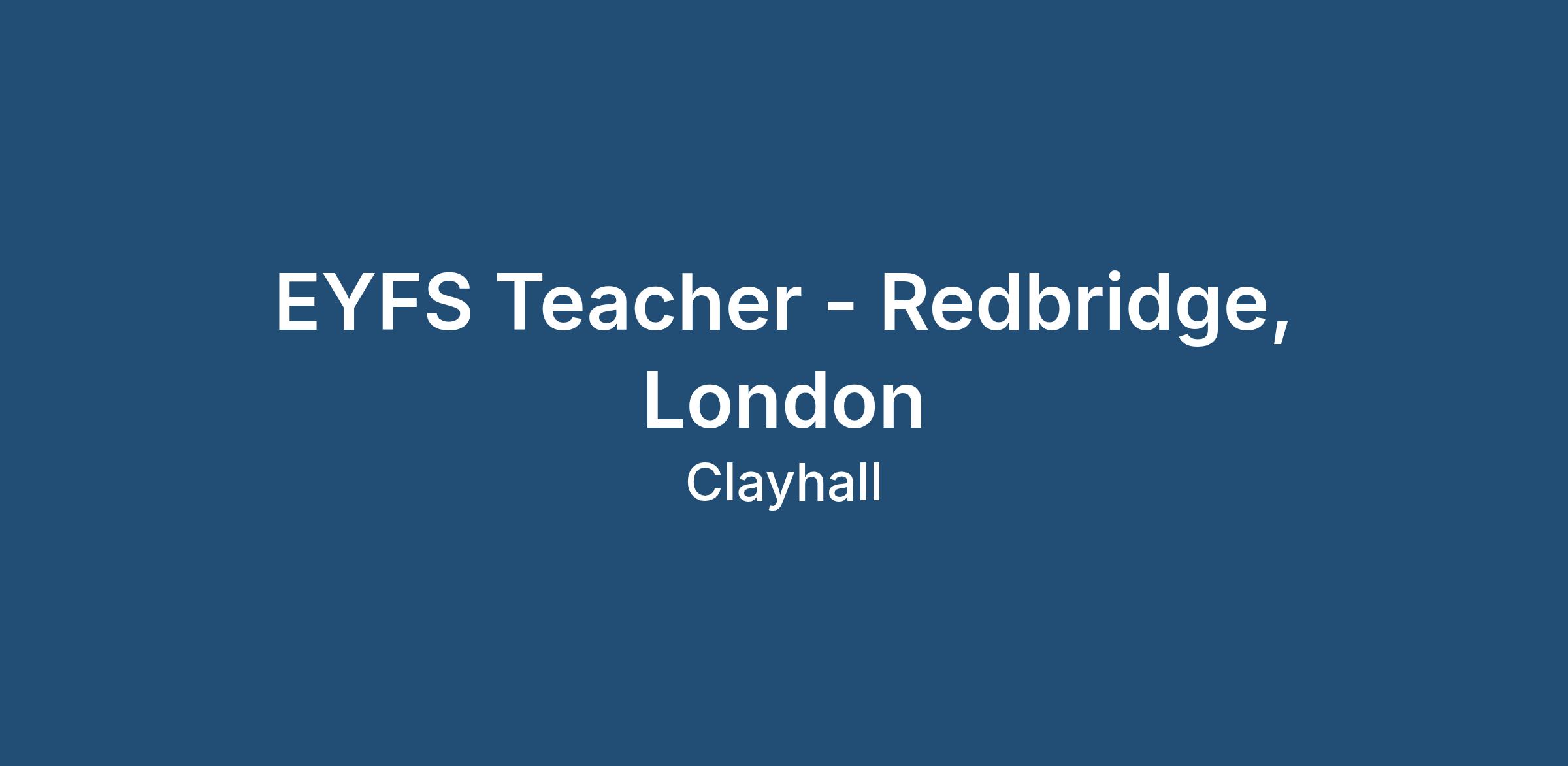 ** EYFS Teacher - Redbridge, London