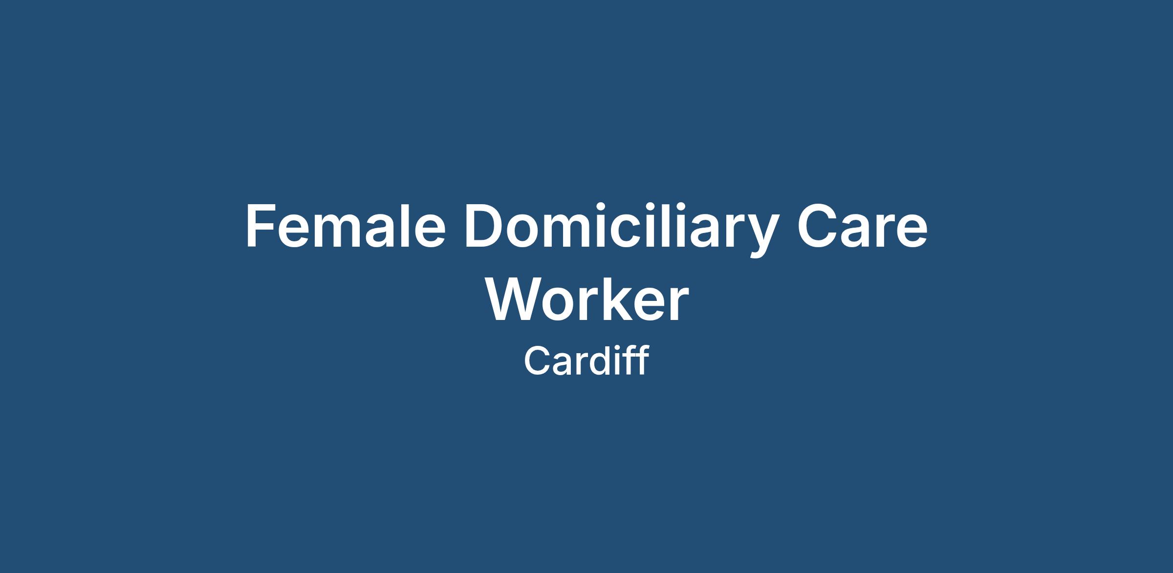 Female Domiciliary Care Worker/Support Workers - Cardiff - Full or Part Time - Driver
