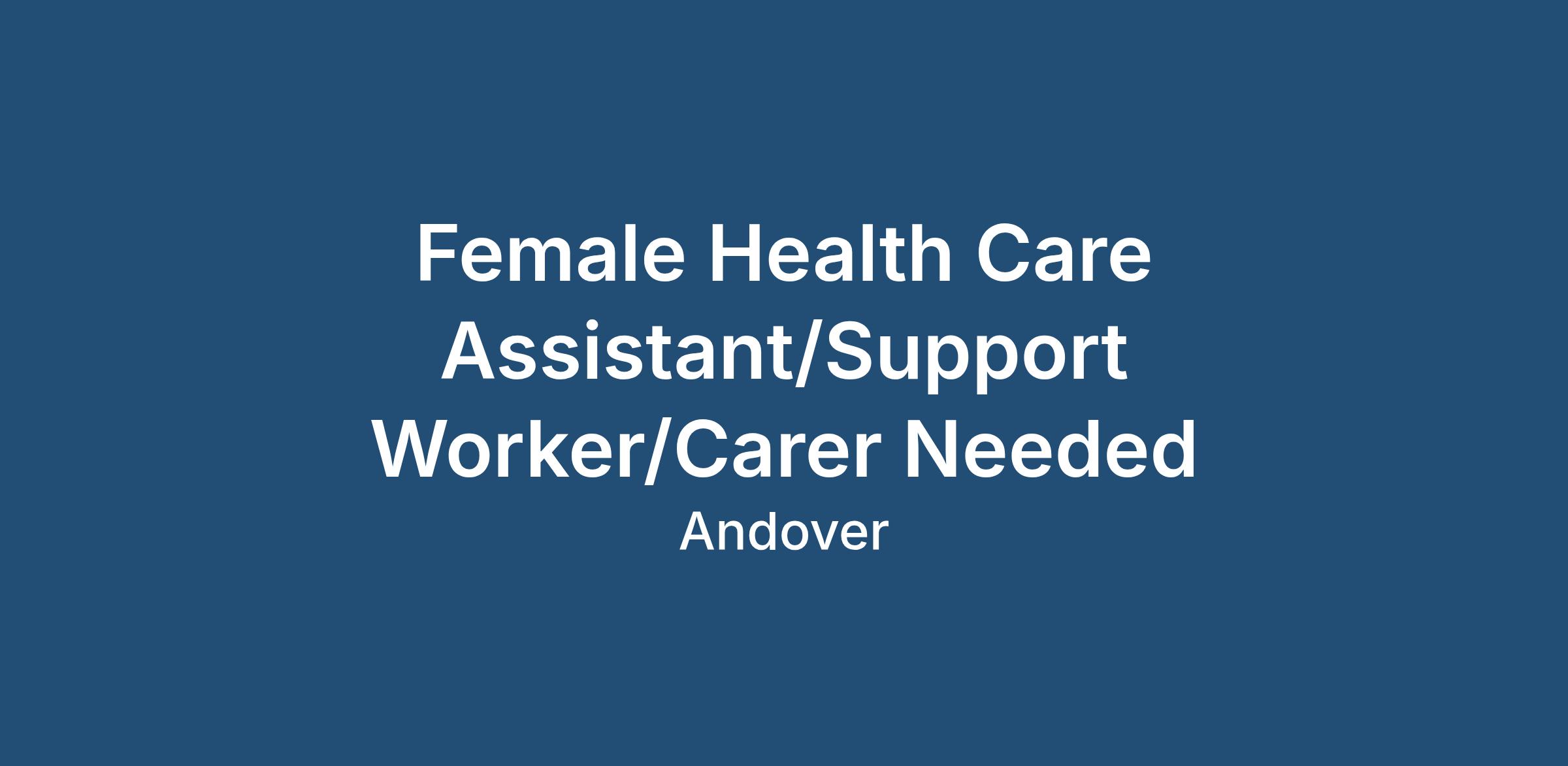 Female Health Care Assistant/Support Worker/Carer Needed