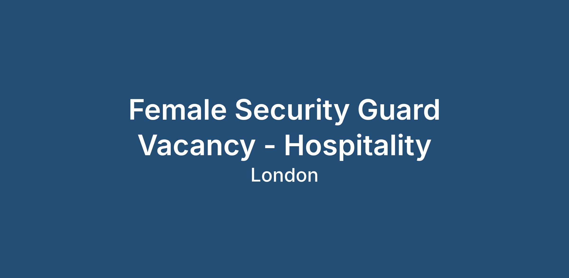 Female Security Guard Vacancy - Hospitality
