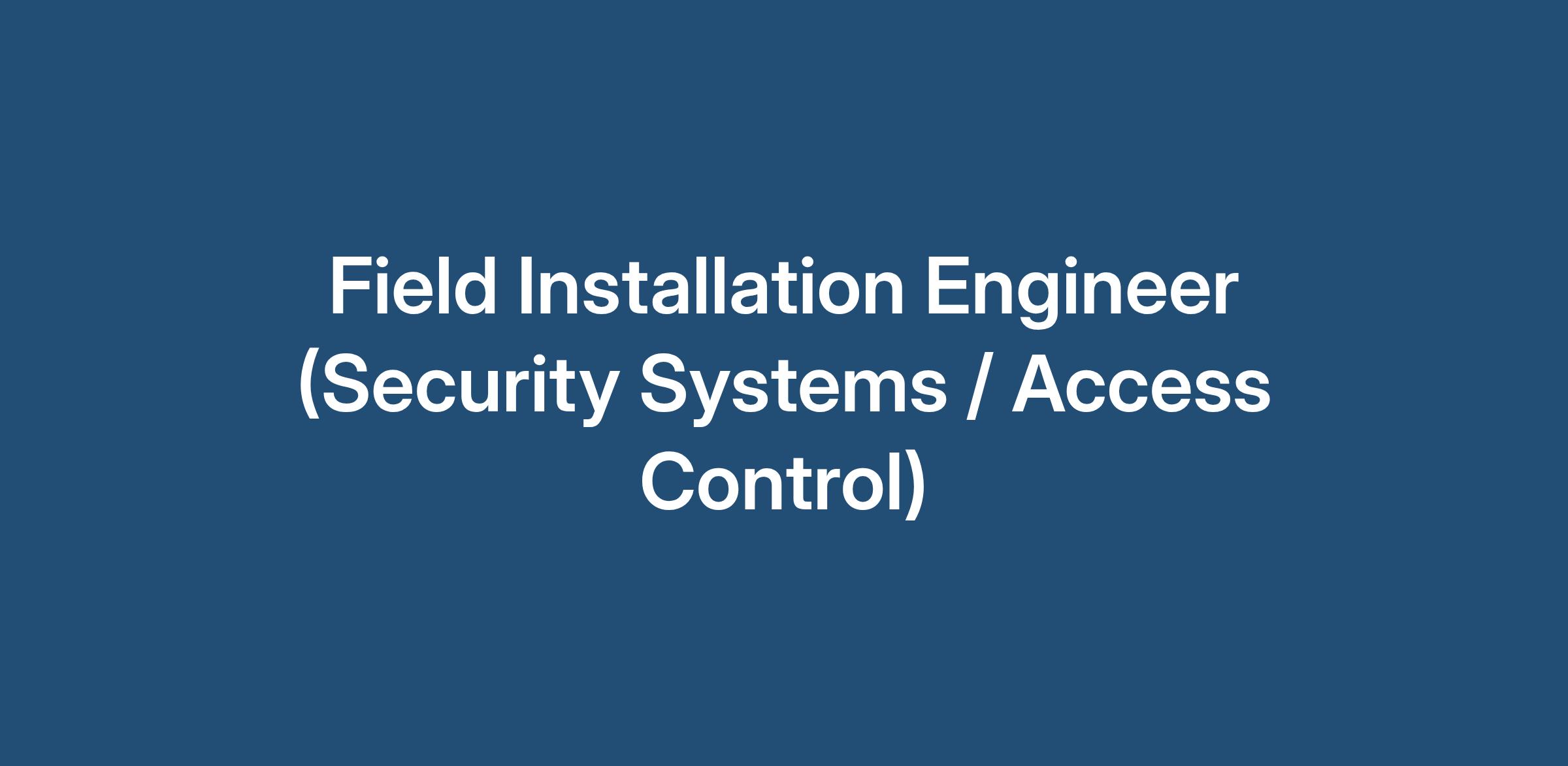 Field Installation Engineer (Security Systems / Access Control)