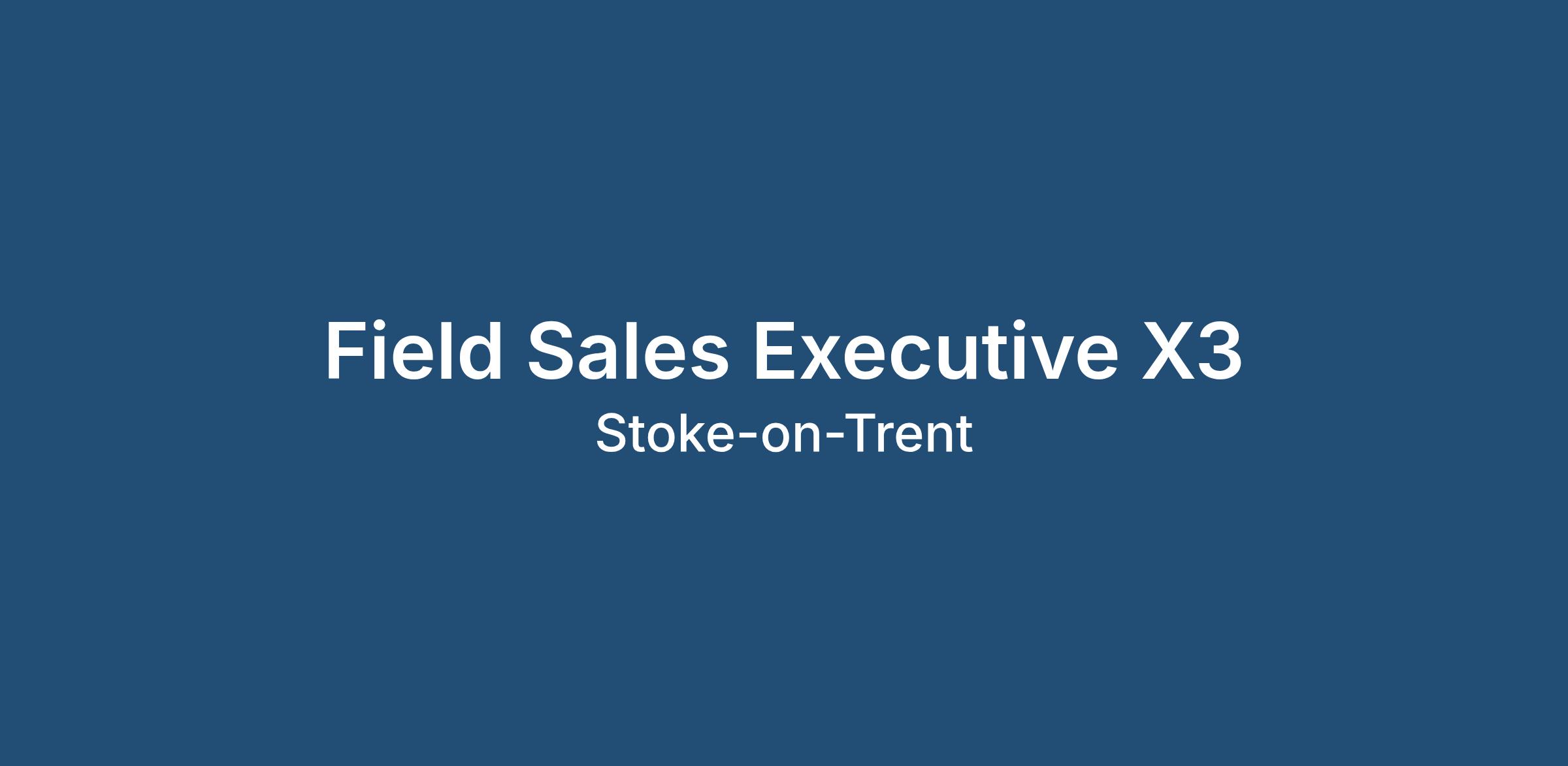 Field Sales Executives needed for a large Full Fibre broadband provider organisation. My client is on the lookout for X3 candidates to cover the following patch - Stoke-on- Trent, Derby, Burton on Trent, Ashbourne, Stone & Uttoxeter.