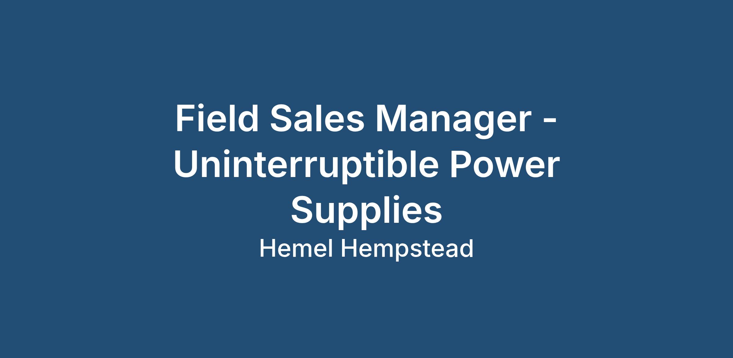 Field Sales Manager - Uninterruptible Power Supplies - Data Centres