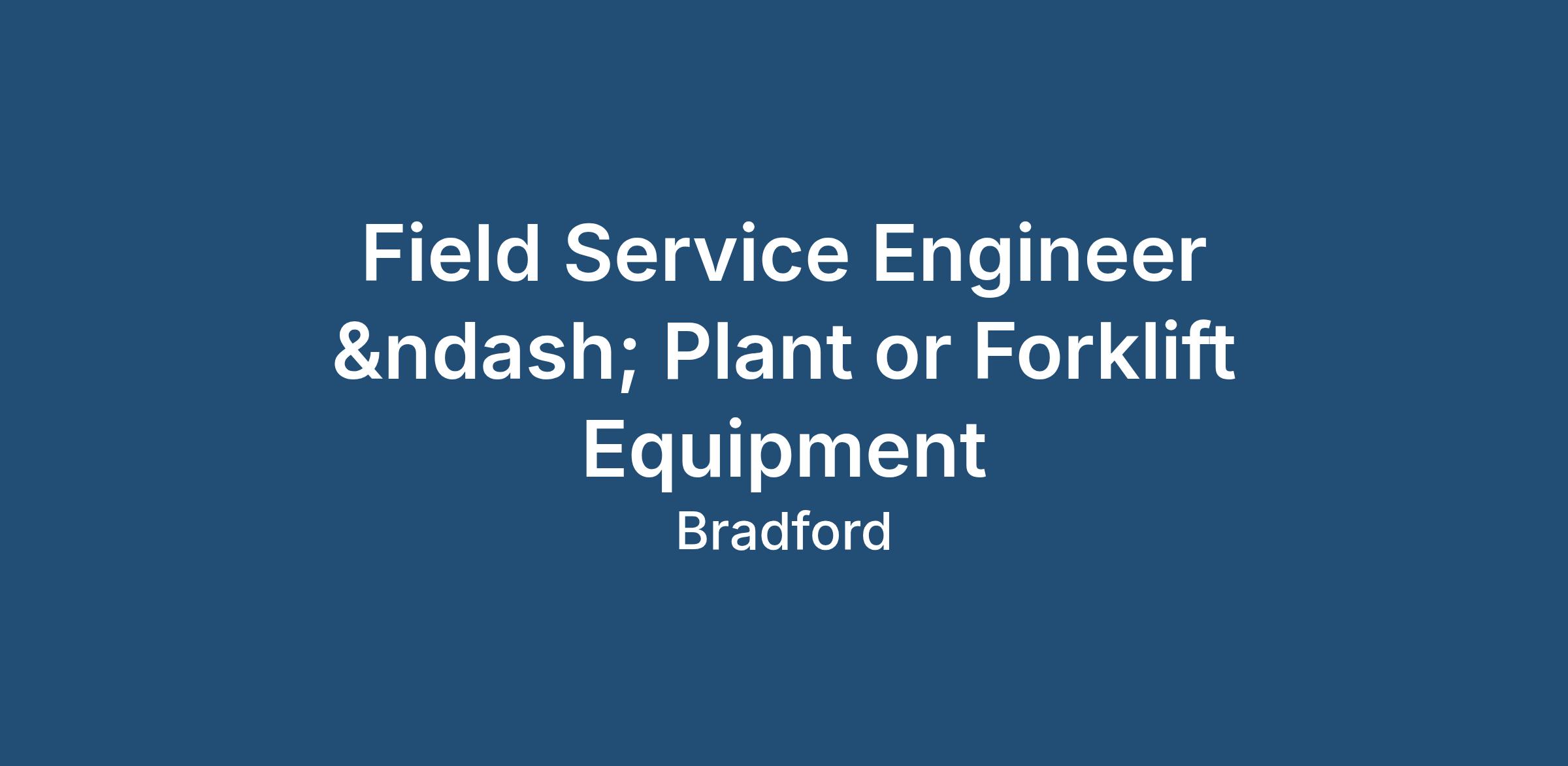 * Previous experience as a Field Service Engineer (plant or forklift).
