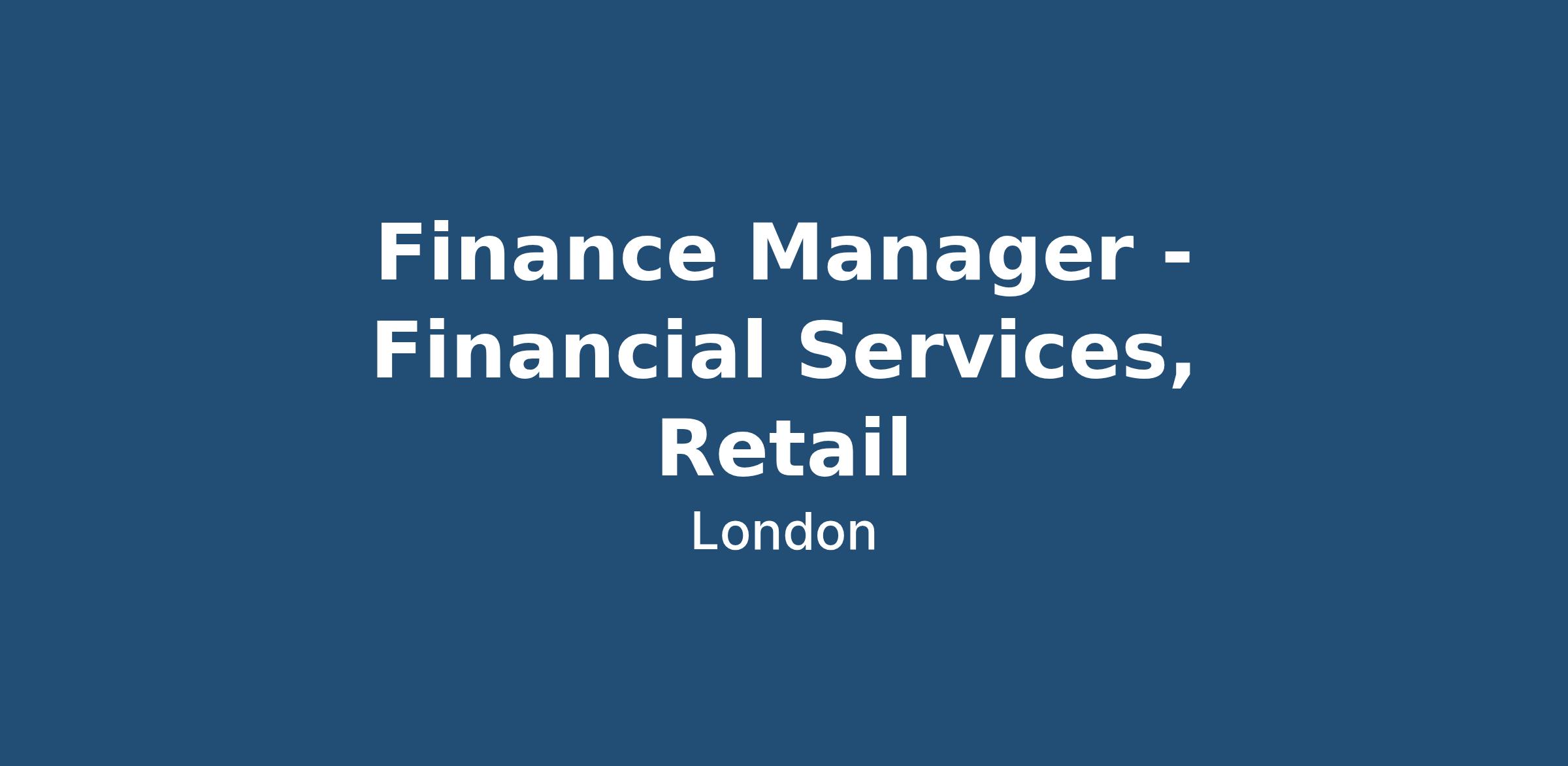 Finance Manager - Financial Services, Retail