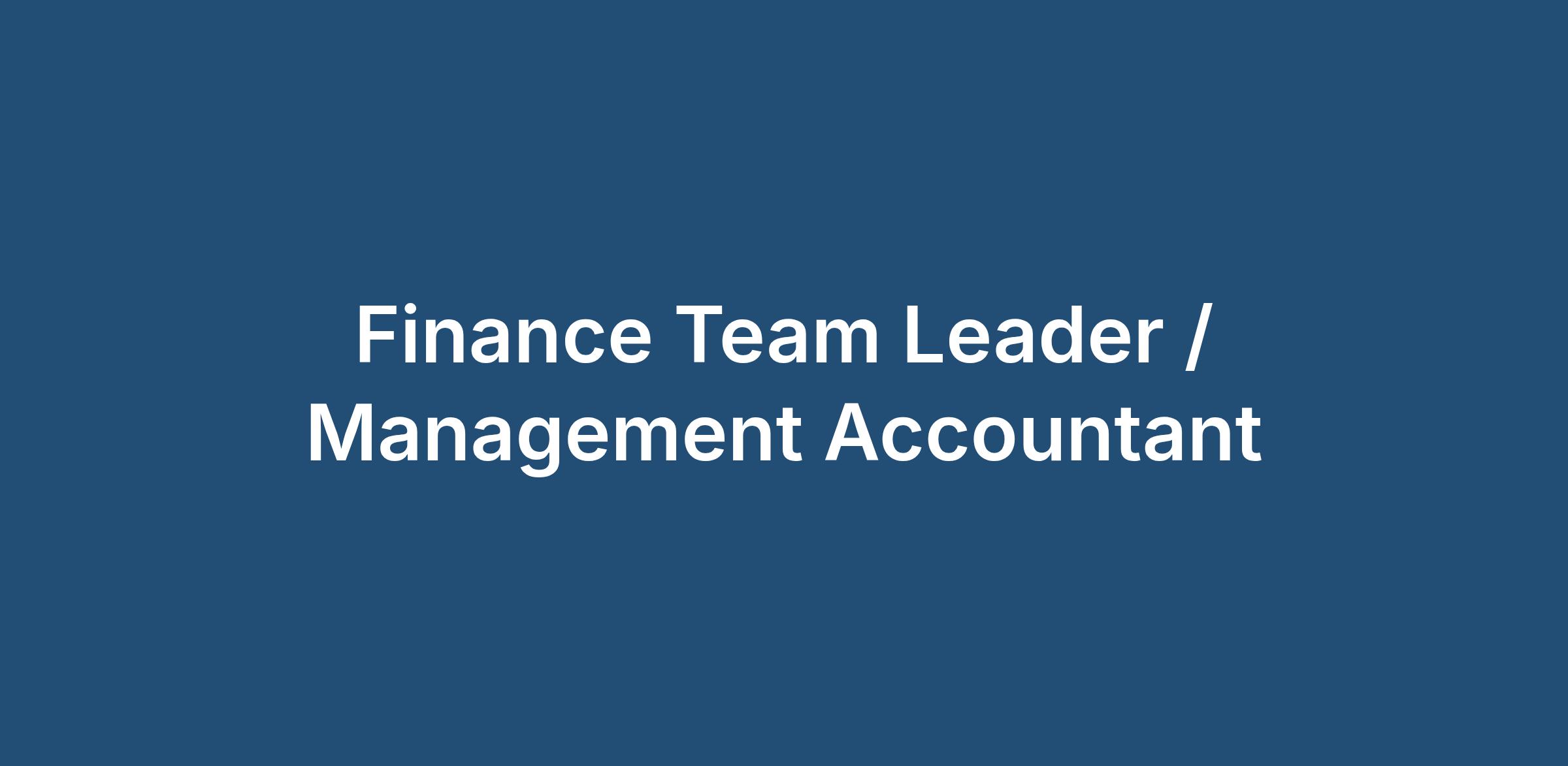 THE FINANCE TEAM LEADER / MANAGEMENT ACCOUNTANT ROLE: