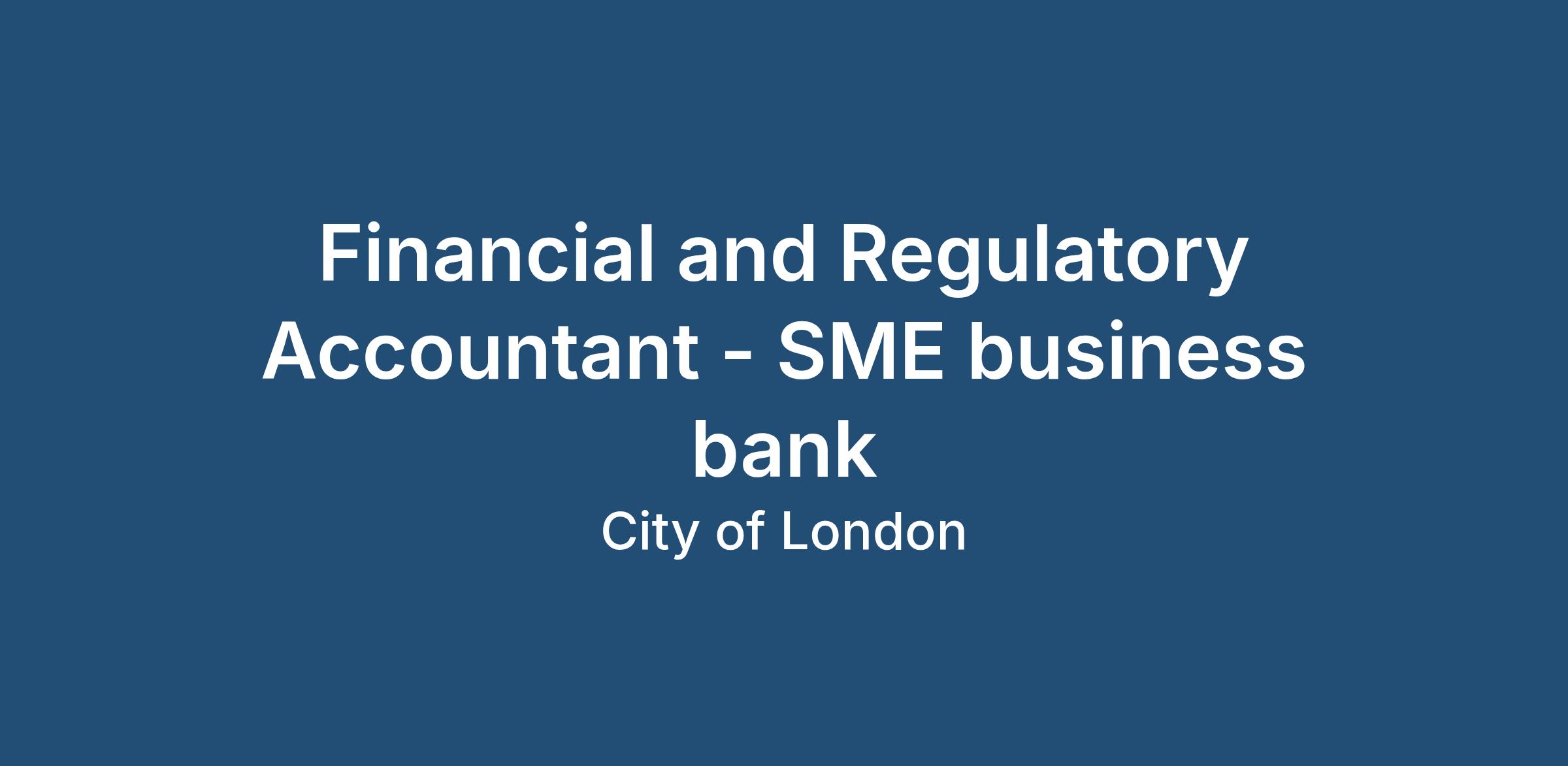 Financial and Regulatory Accountant - SME business bank