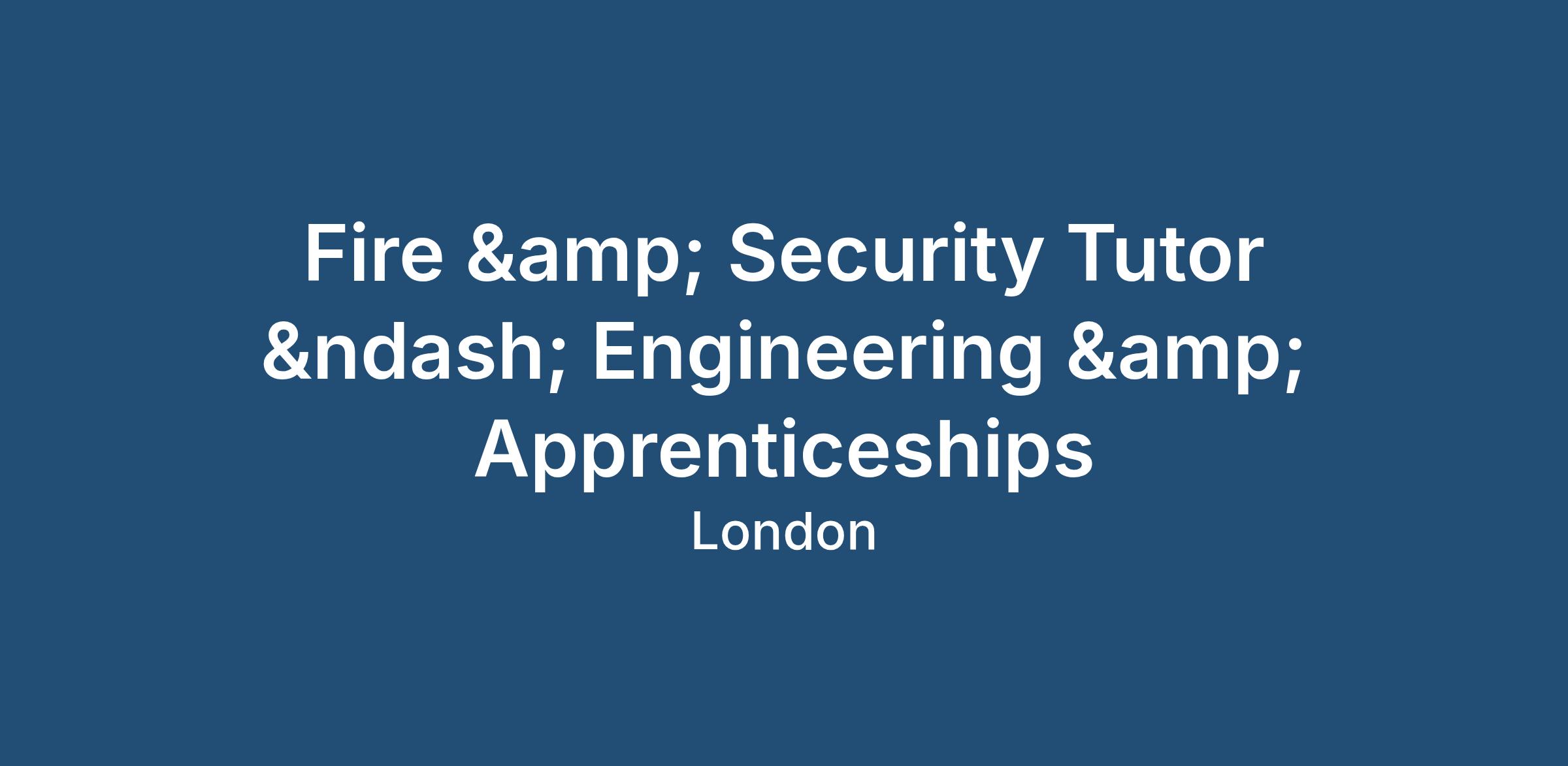 You will play a key role in developing the next generation of Fire, Emergency and Security Systems (FESS) engineers, delivering classroom and practical training aligned with the Level 3 Fire, Emergency & Security Systems apprenticeship standard.